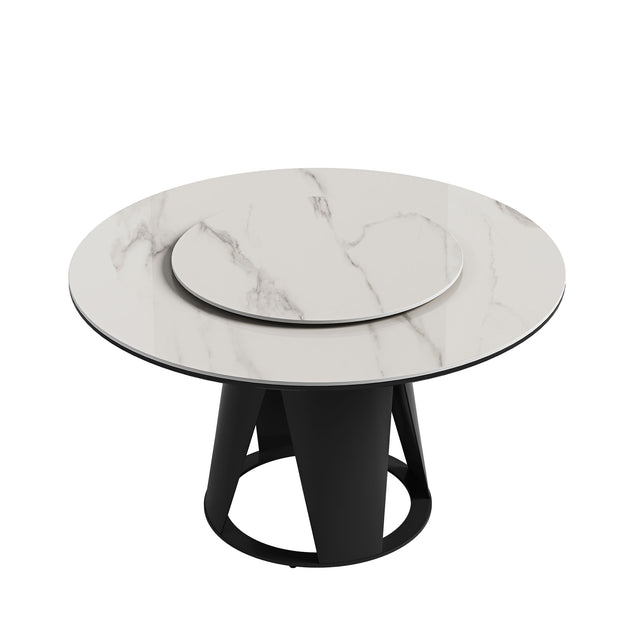 Modern Sintered Stone Dining Table With Round Turntable, Metal Pedestal, And Chairs