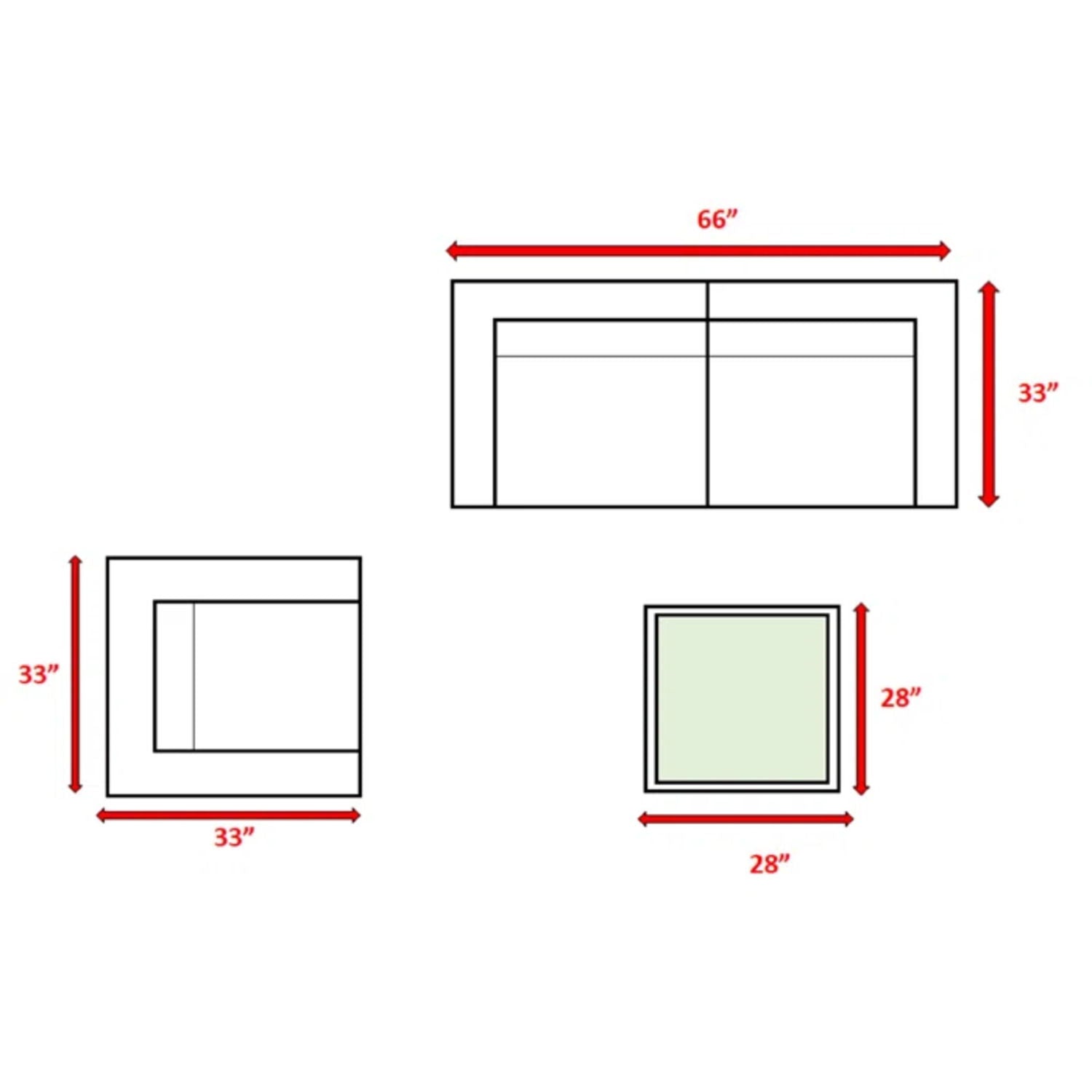 - Complete 4-Piece Set: Includes one loveseat, one lounge chair, one coffee table, and six cushions.