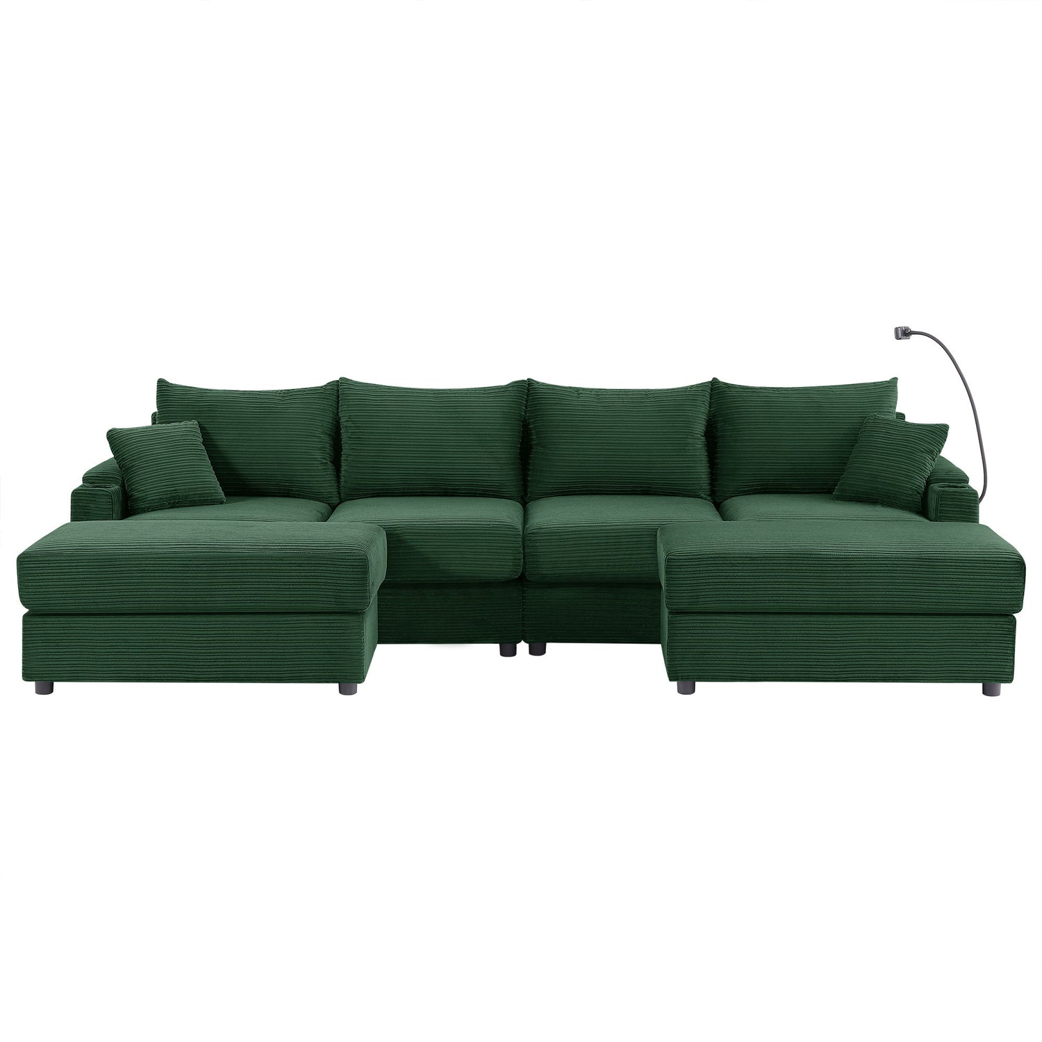 Modern Style 4 Seater Sofa Sectional Sofa Couch With Storage Space, Two Movable Ottomans, Two USB Ports, Two Cup Holders, A Phone Holder For Living Room - Green