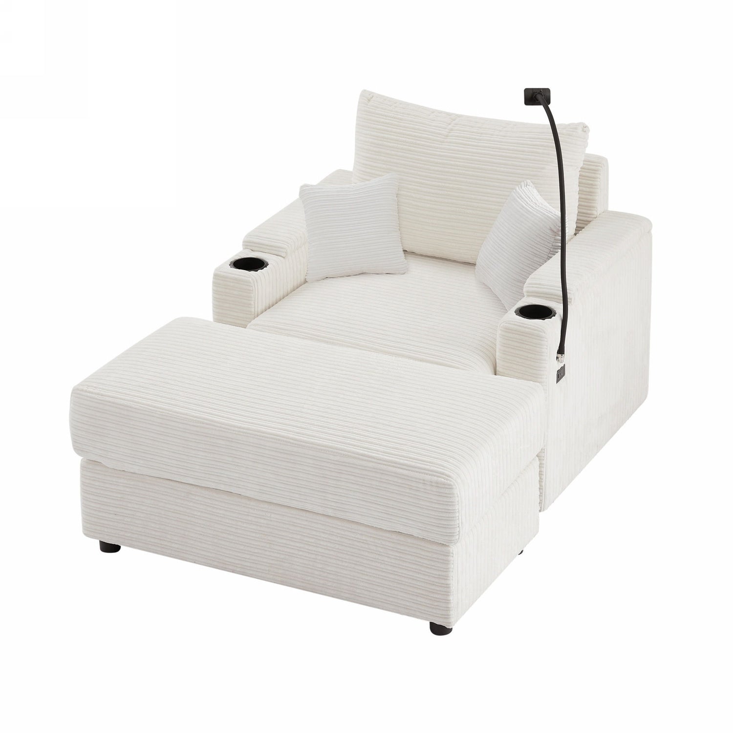 Modern Style Single Sofa Sofa Couch With Storage Space, A Movable Ottoman, Two USB Ports, Two Cup Holders, A Phone Holder For Living Room - Beige