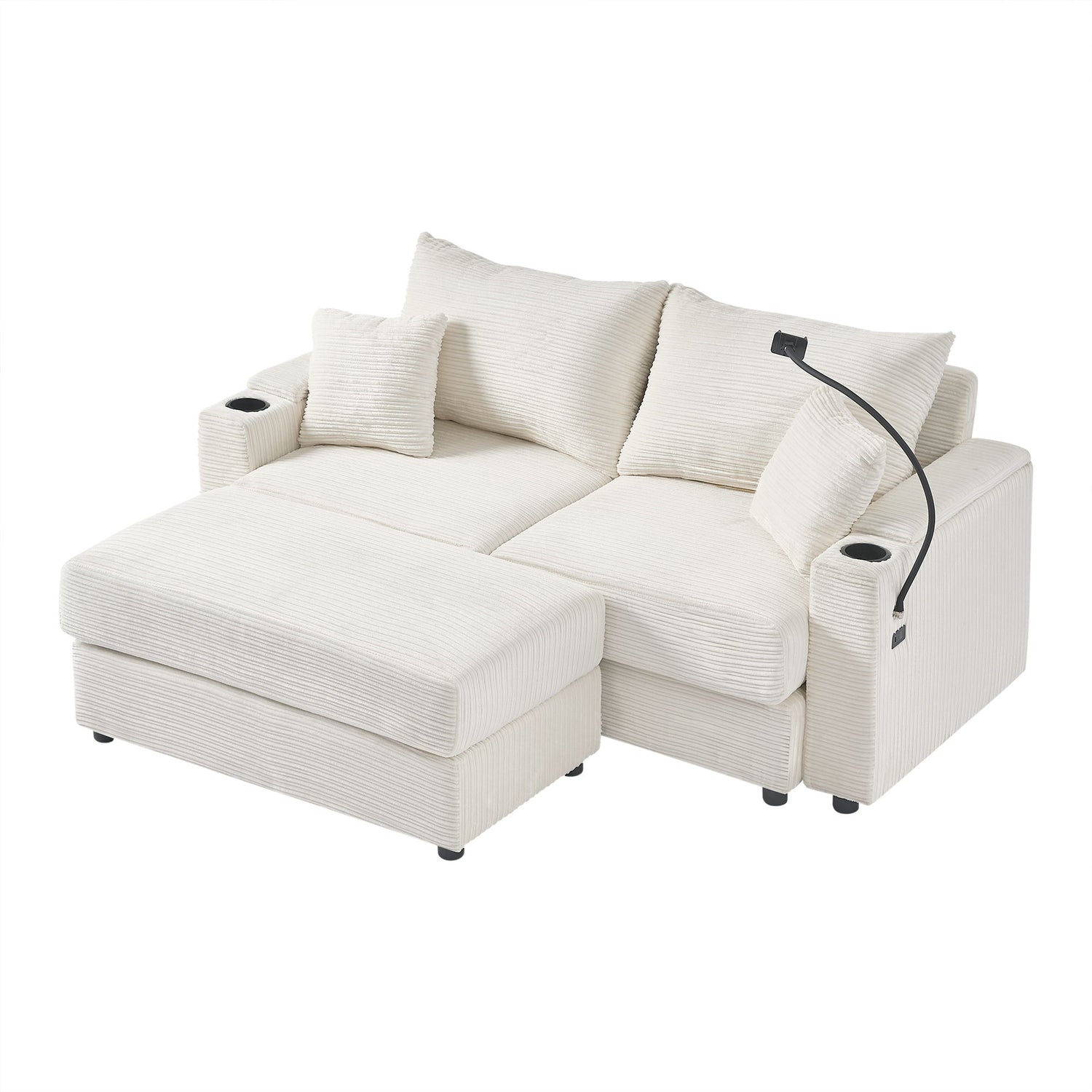 Modern Style Loveseat Sofa Sectional Sofa Couch With Storage Space, A Movable Ottoman, Two USB Ports, Two Cup Holders, A Phone Holder For Living Room - Beige