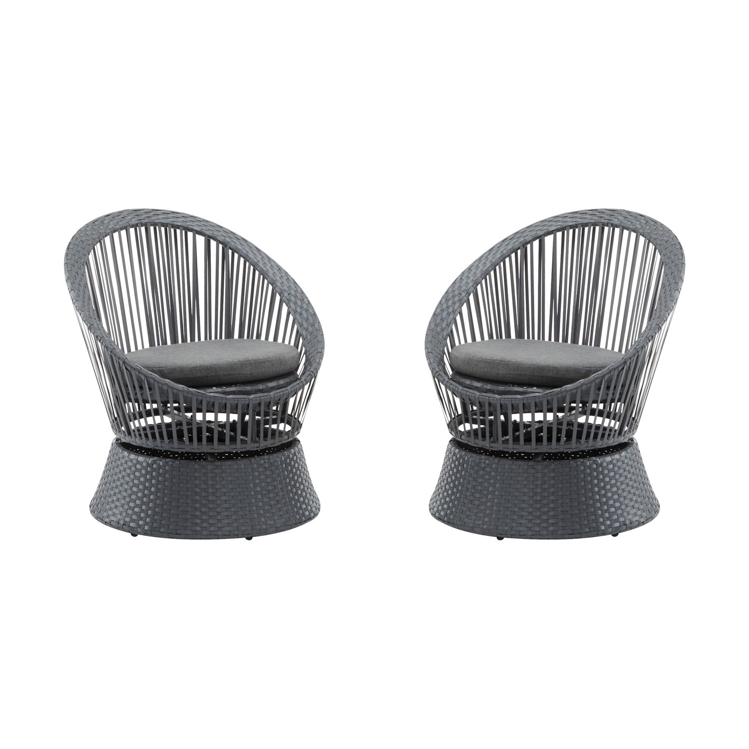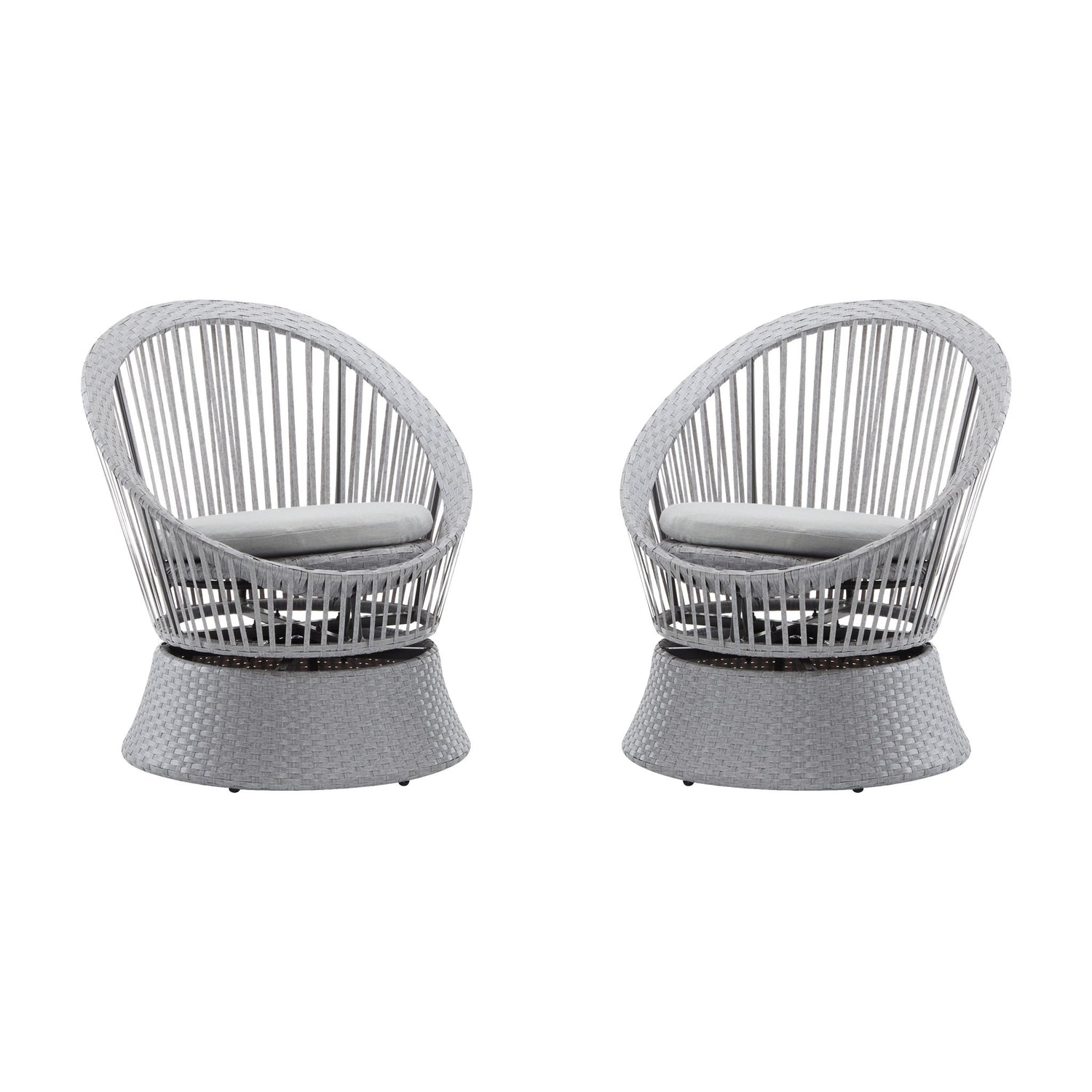 Modern Swivel Wicker Lounge Chair Set With Rattan And Iron Frame, Round Design - Gray