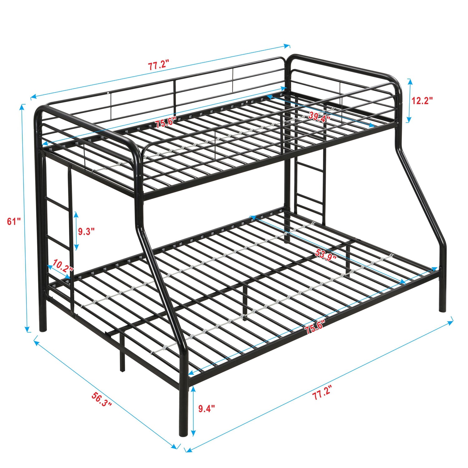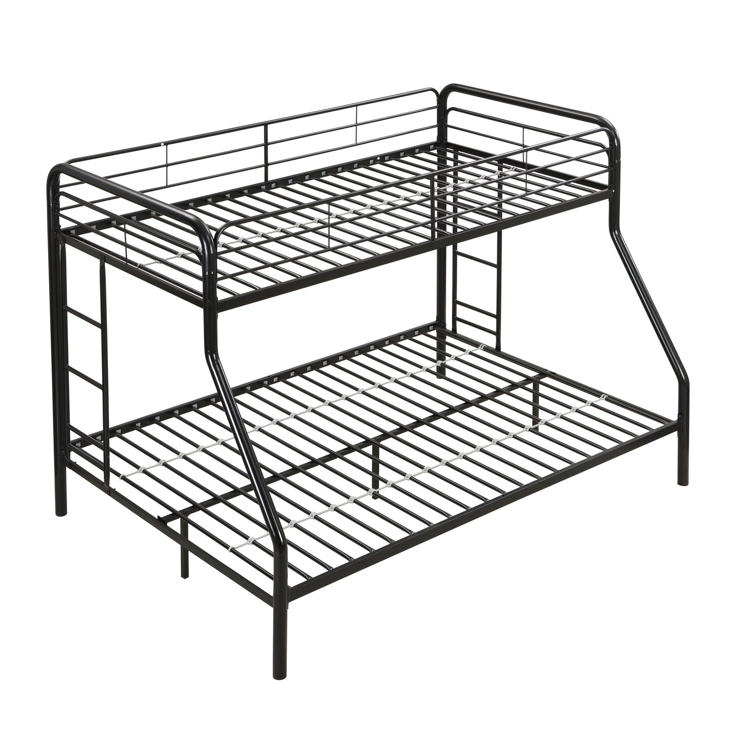 Modern Twin Over Full Metal Bunk Bed With Trundle And Dual Side Ladder And Metal Design - Black / Brown is backordered and will ship as soon as it is back in stock.