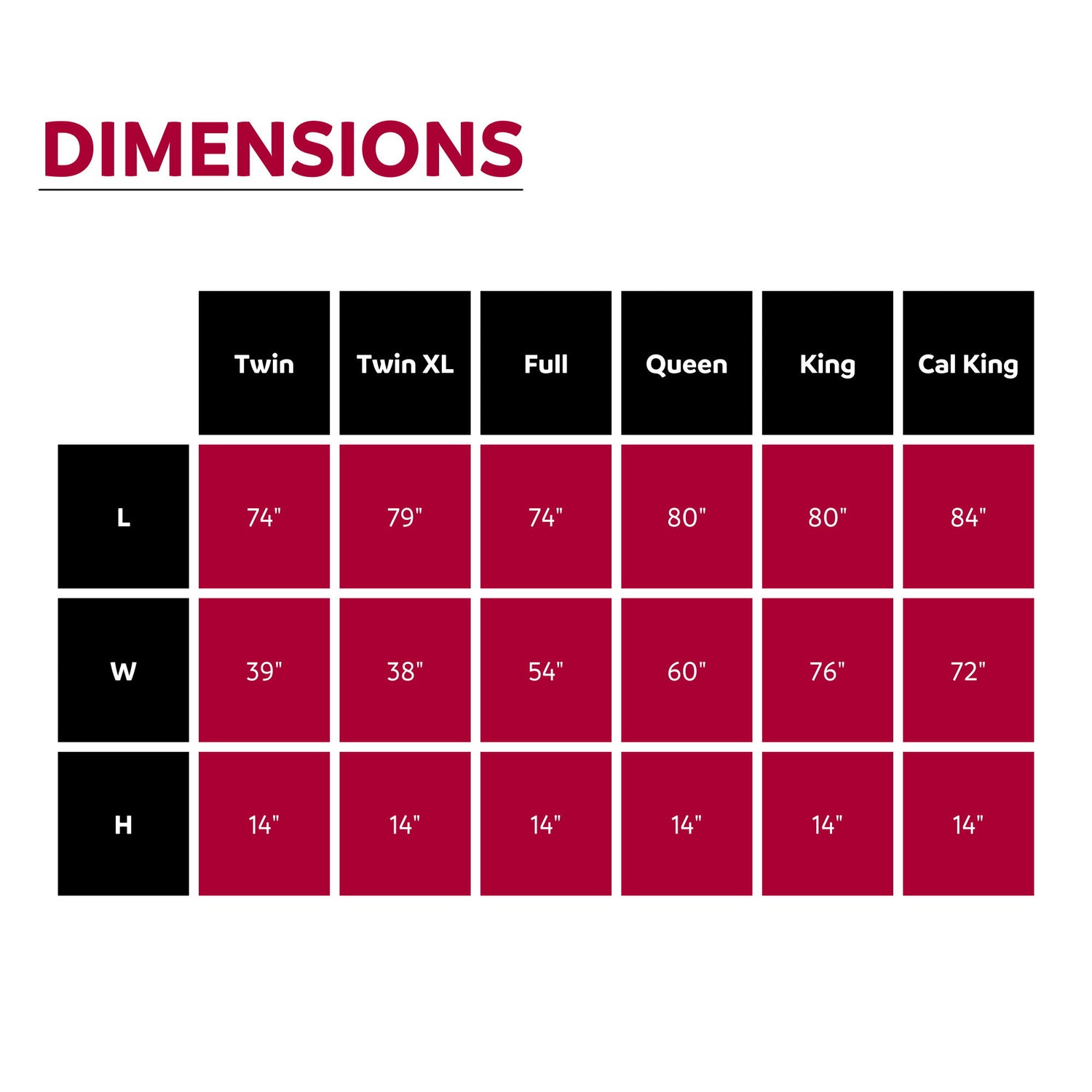 60.0"W x 80.0"D x 14.0"H - 75.0 lb