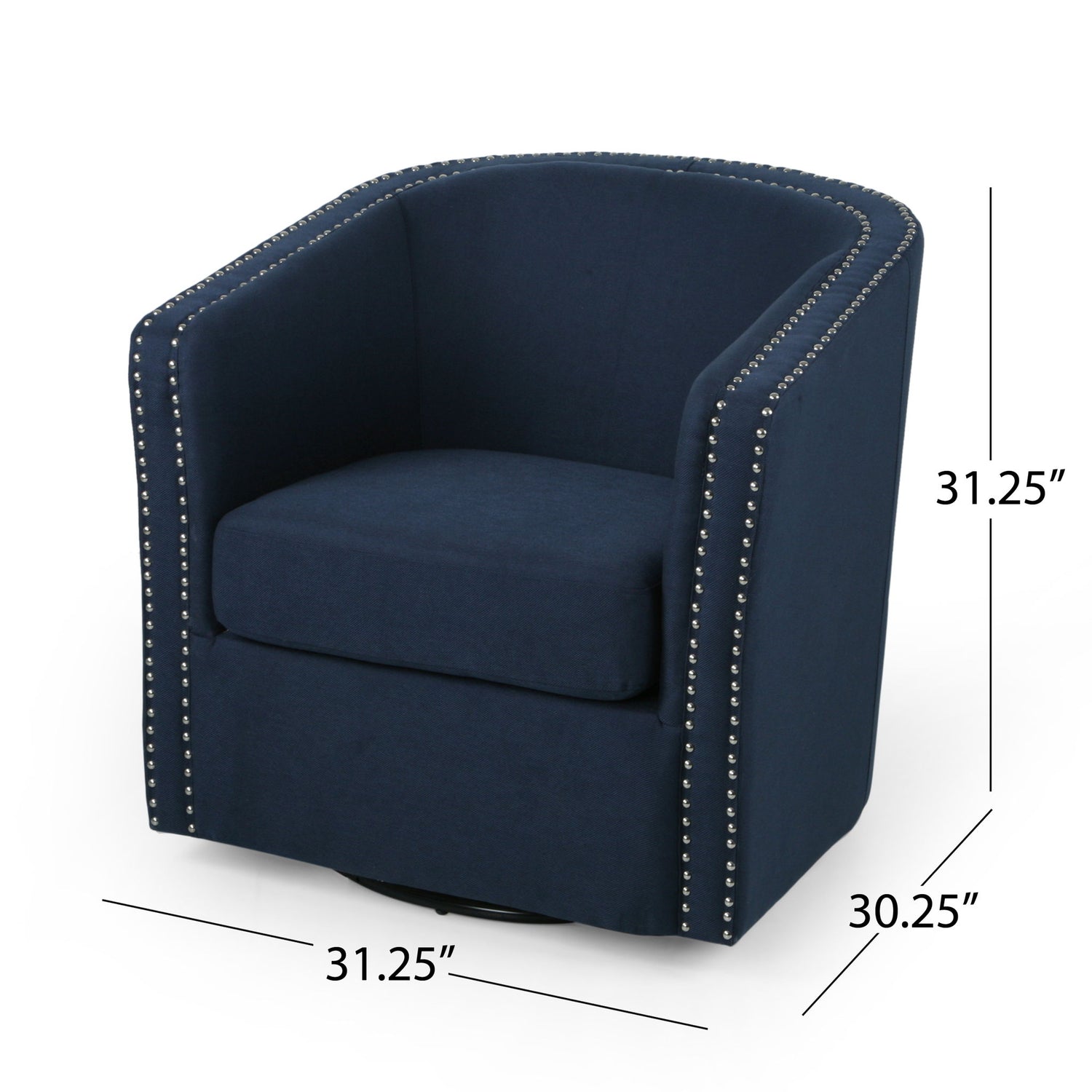 - CONTEMPORARY DESIGN: Showcasing nailhead trims and a classic tub shape, this swivel chair embodies a truly contemporary style.