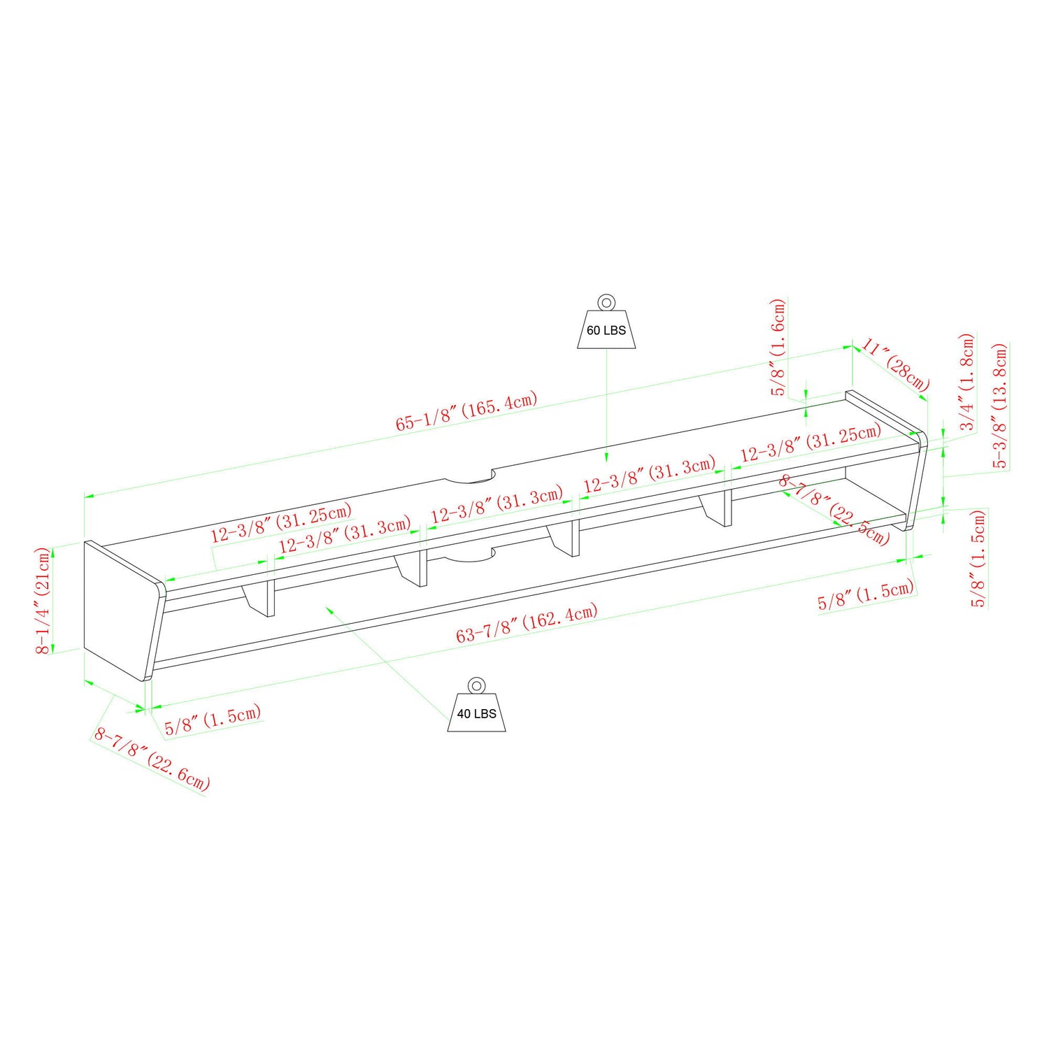 65.13"W x 11.0"D x 8.25"H - 29.0 lb