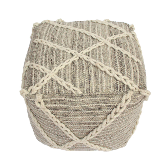 Modern Wool Rope Square Pouf Ottoman Floor Cushion - Gray / Ivory