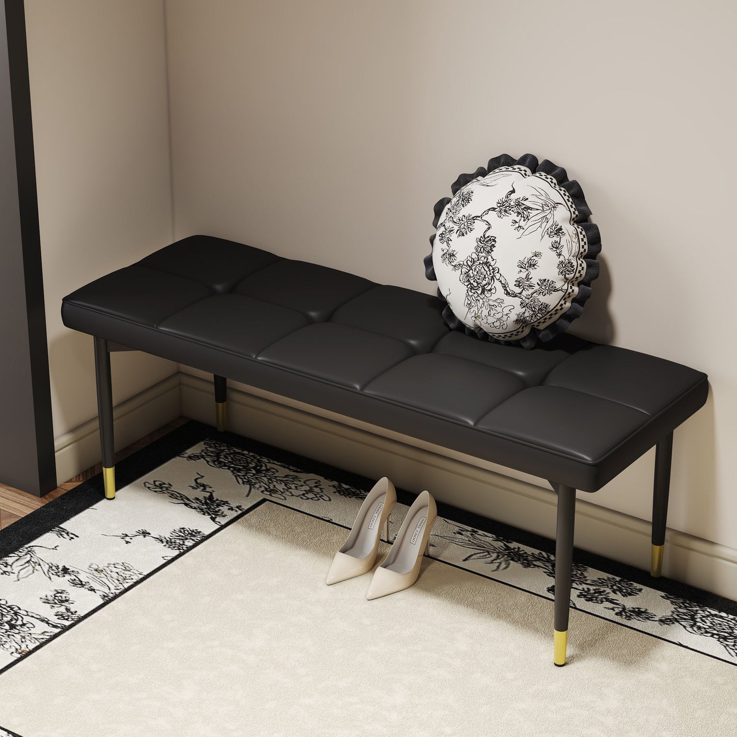 Multifunctional Shoe Bench, Sturdy Metal Legs With Gold Accents - Black