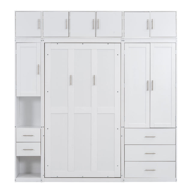 Full Size Murphy Bed With Lockers And Wardrobes - White
