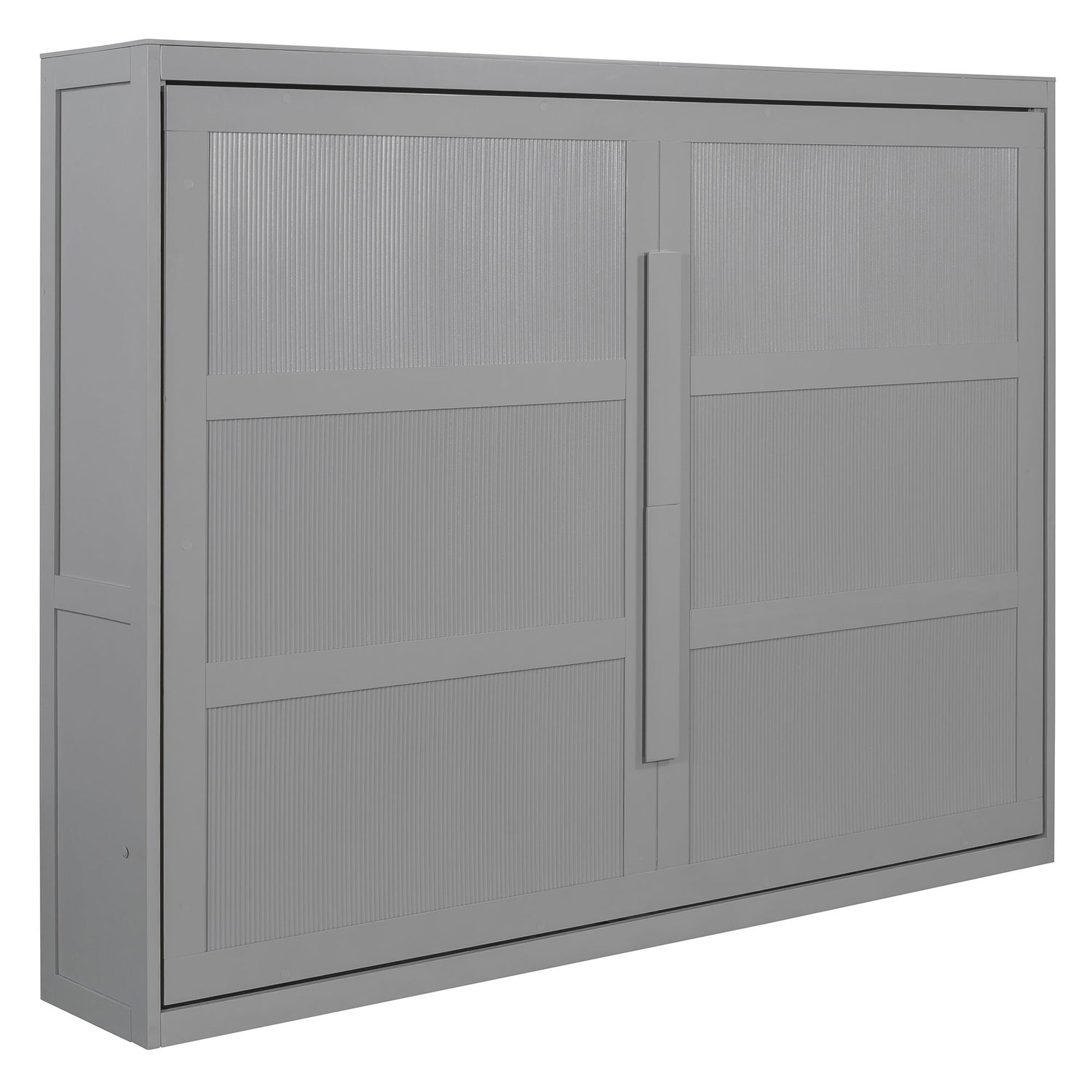 Queen Size Murphy Wall Bed Modern Design With LED Lights - Gray