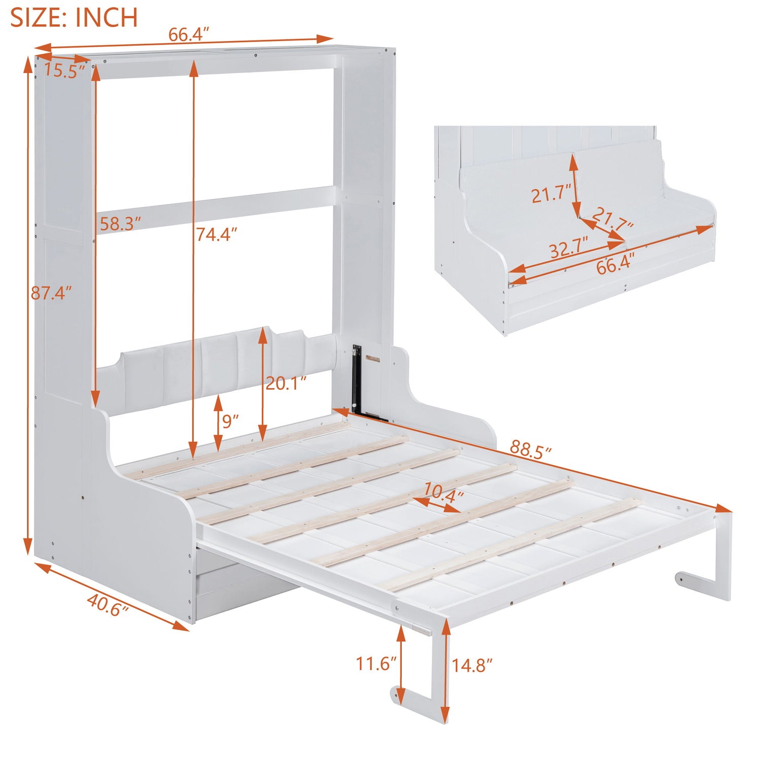 Queen Size Murphy Space Saving Wall Bed With Cushion - White