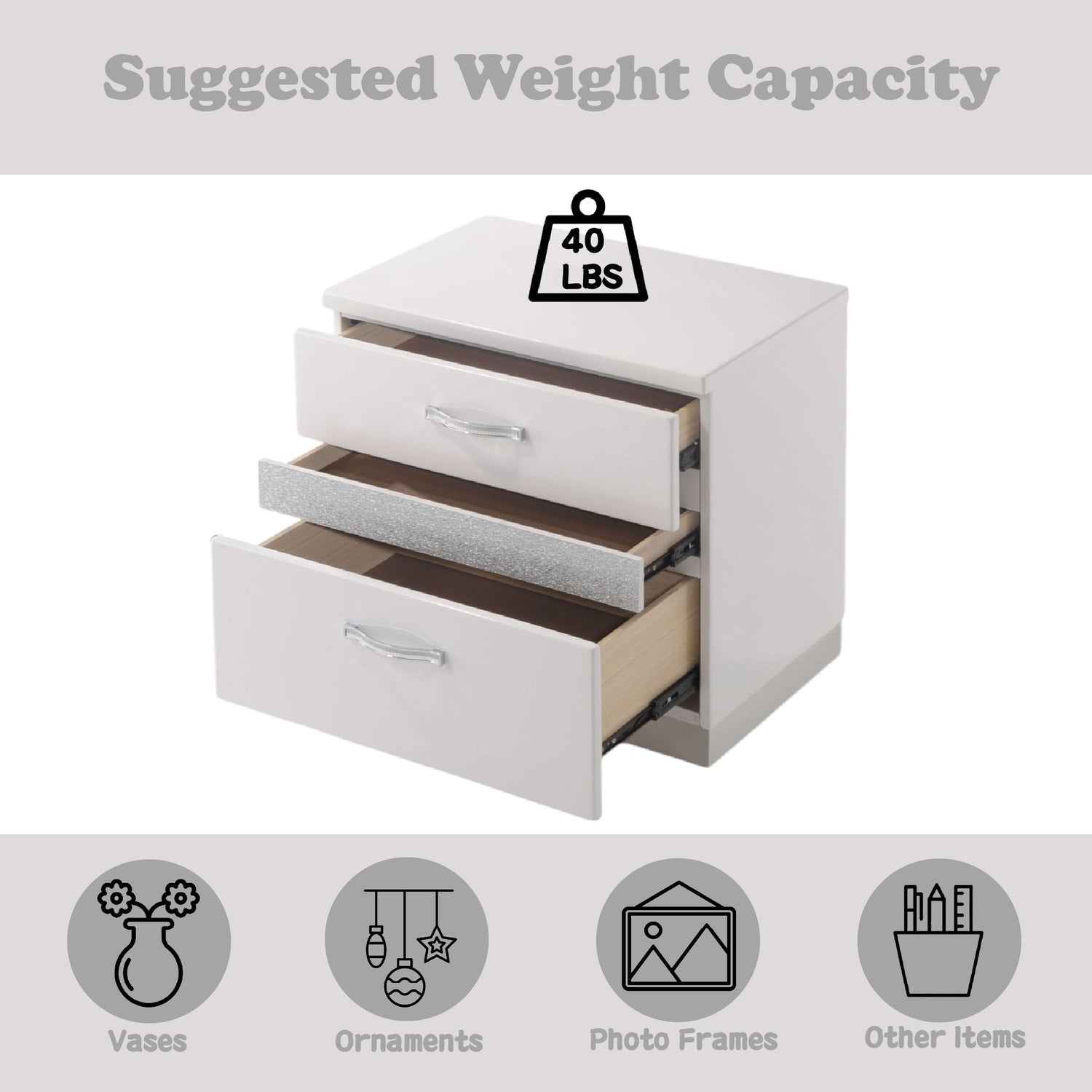 - Sleek Design: The nightstand boasts a sleek, modern design with clean lines, complemented by stylish metal handles that contrast beautifully with the white finish.