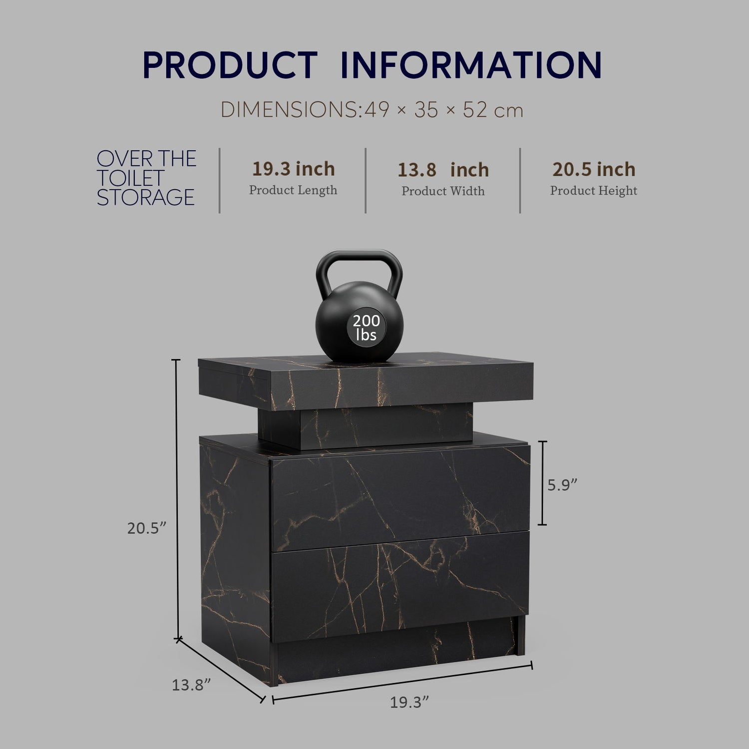 Nightstand LED, Bedside Table Cabinet With 2 Drawers For Bedroom