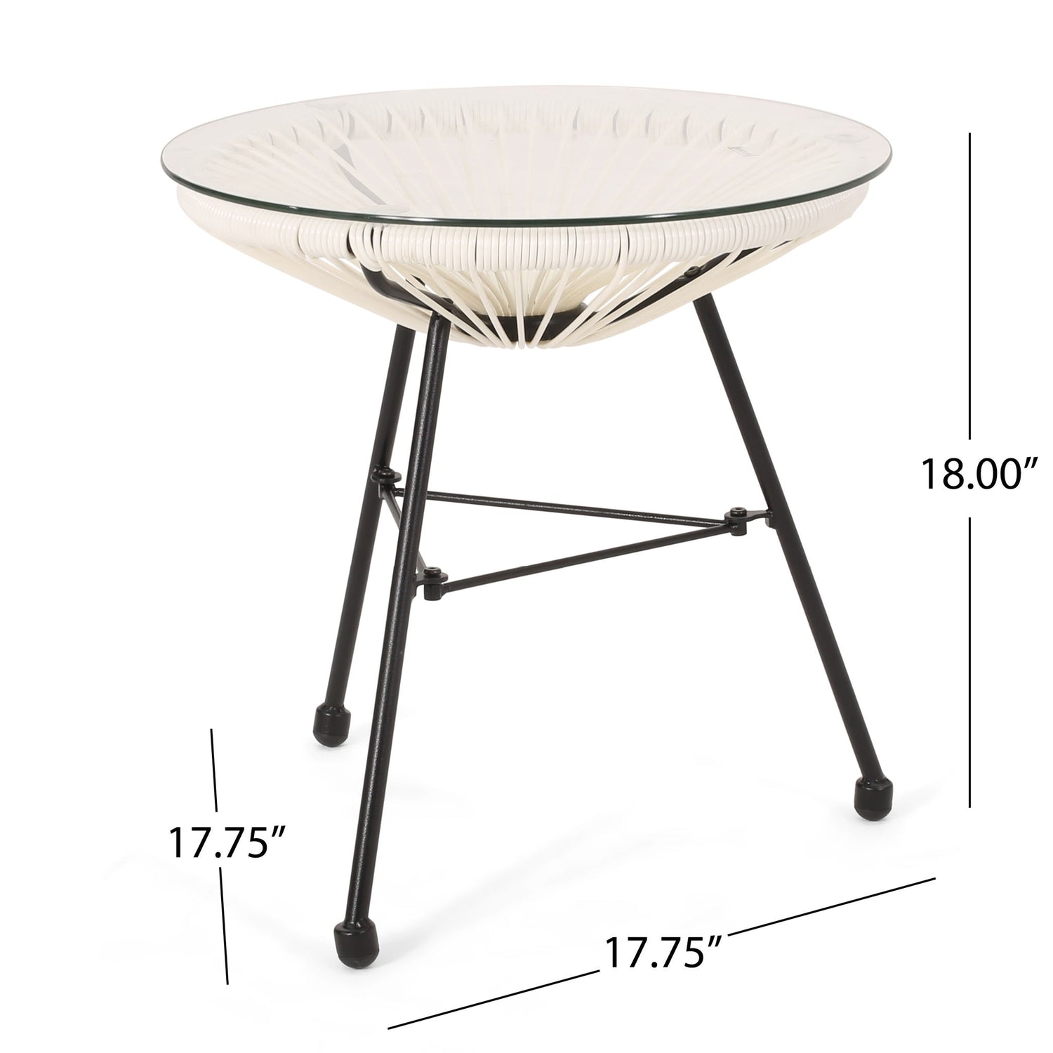 Nusa - Side Table With Tempered Glass Top And Polyethylene Rattan Base - White