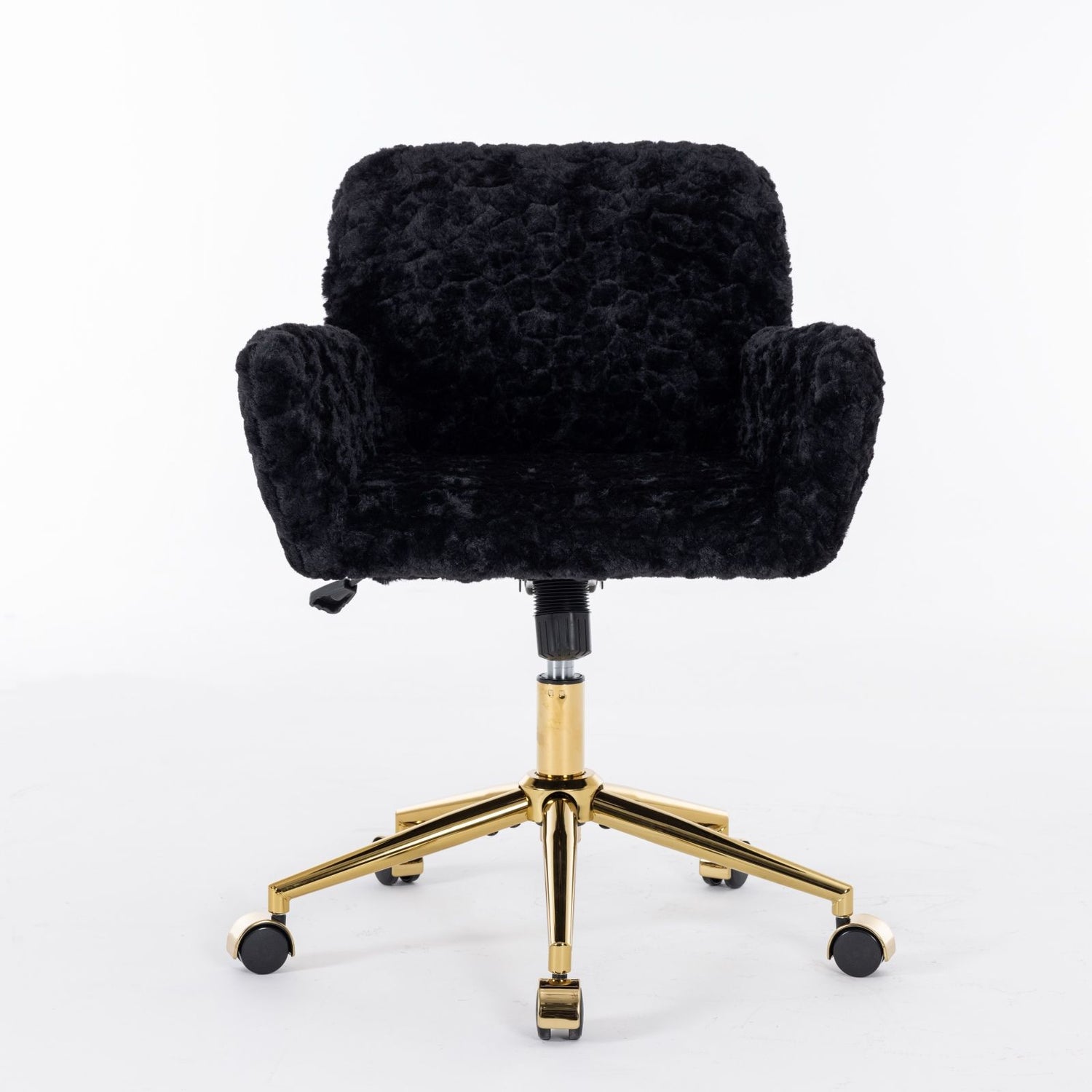 Office Chair, Artificial Rabbit Hair Home Office Chair With Golden Metal Base, Adjustable Desk Chair Swivel Office Chair, Vanity Chair - Black