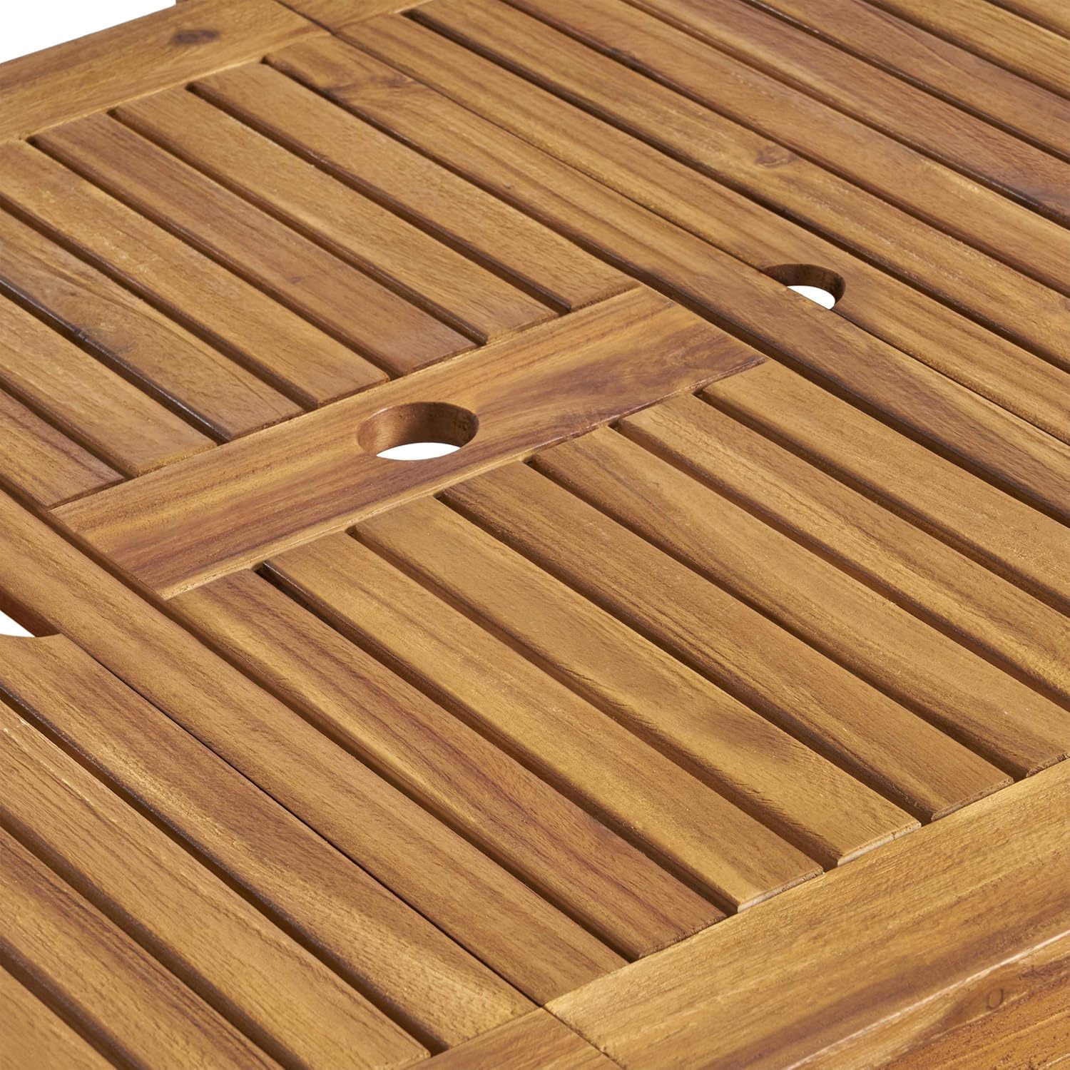 - Quality Materials: Made from durable acacia wood and water-resistant fabric cushions composed of 100% polyester, this set is designed for long-lasting use and easy maintenance.