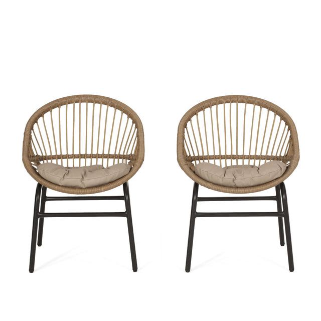 Outdoor Accent Chair With Curved Back And Basket Frame, (Set of 2) - Light Brown / Beige