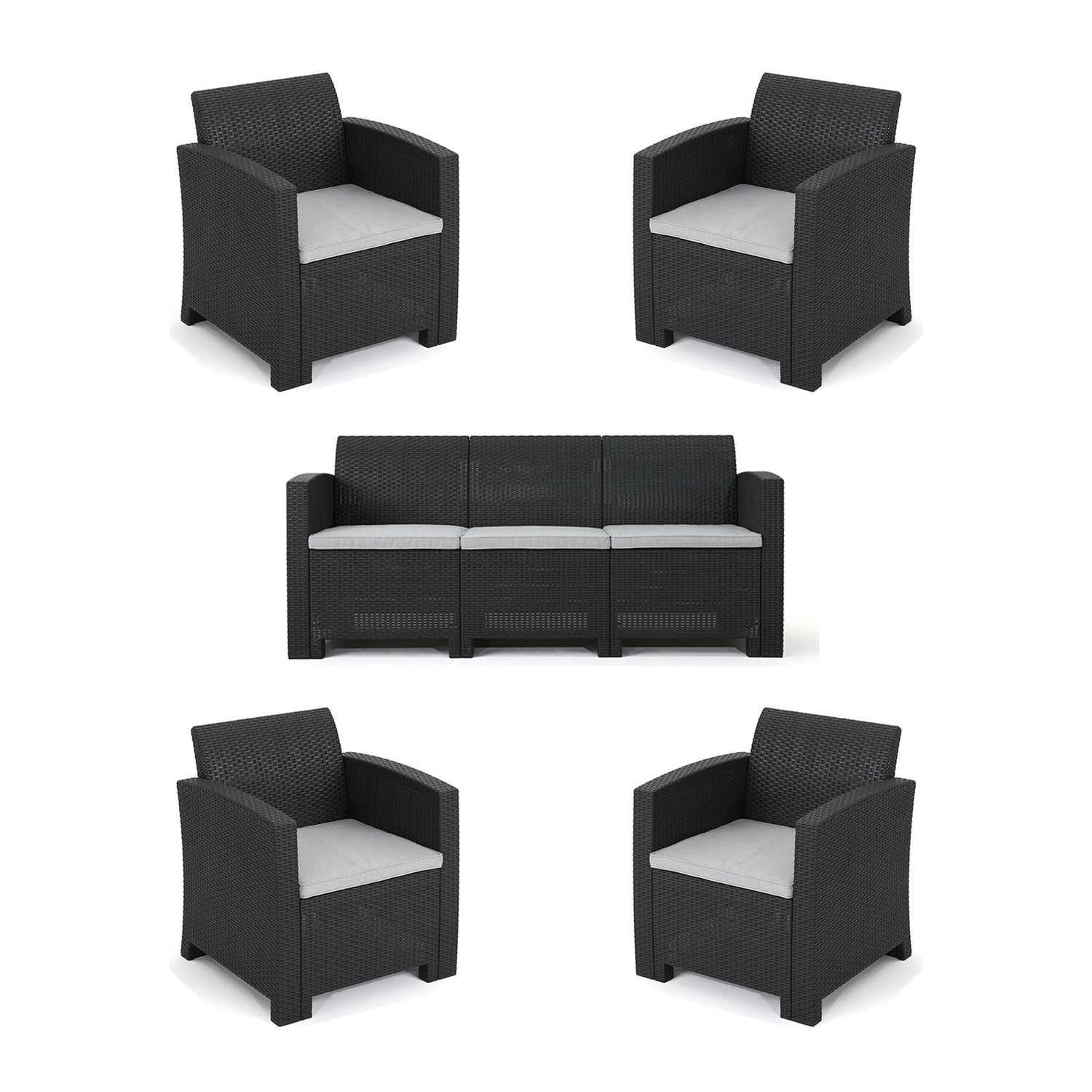 Outdoor Faux Wicker Rattan Style Chat Set With Water Resistant Cushions, 5 Pieces Set - Charcoal / Light Gray
