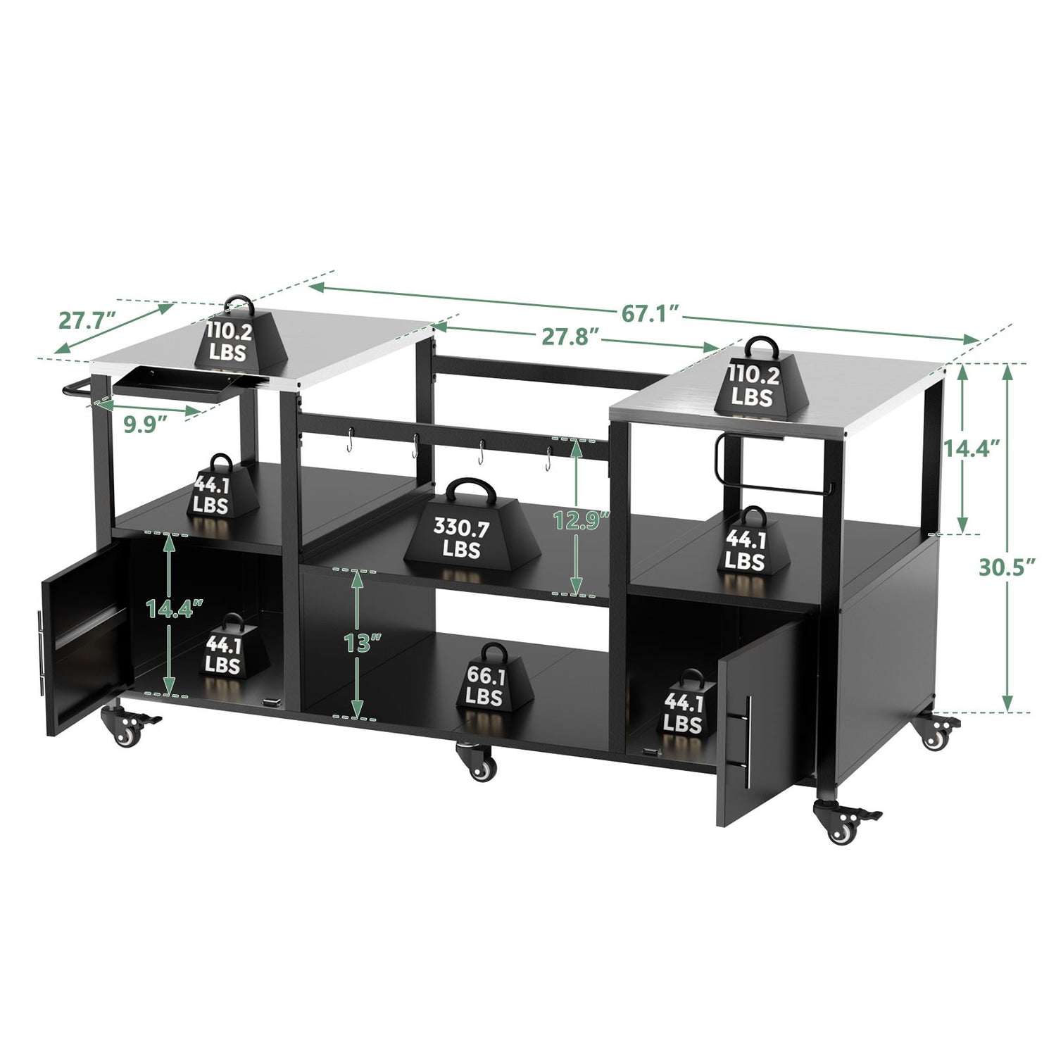 - Storage: Includes 2 large storage boxes and open space for organizing grilling tools.