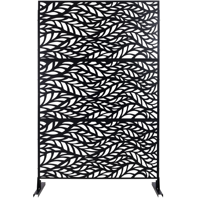 Outdoor & Indoor Privacy Screen Metal Privacy Screen, Freestanding Decorative Privacy Screen For Deck Balcony Patio - Black
