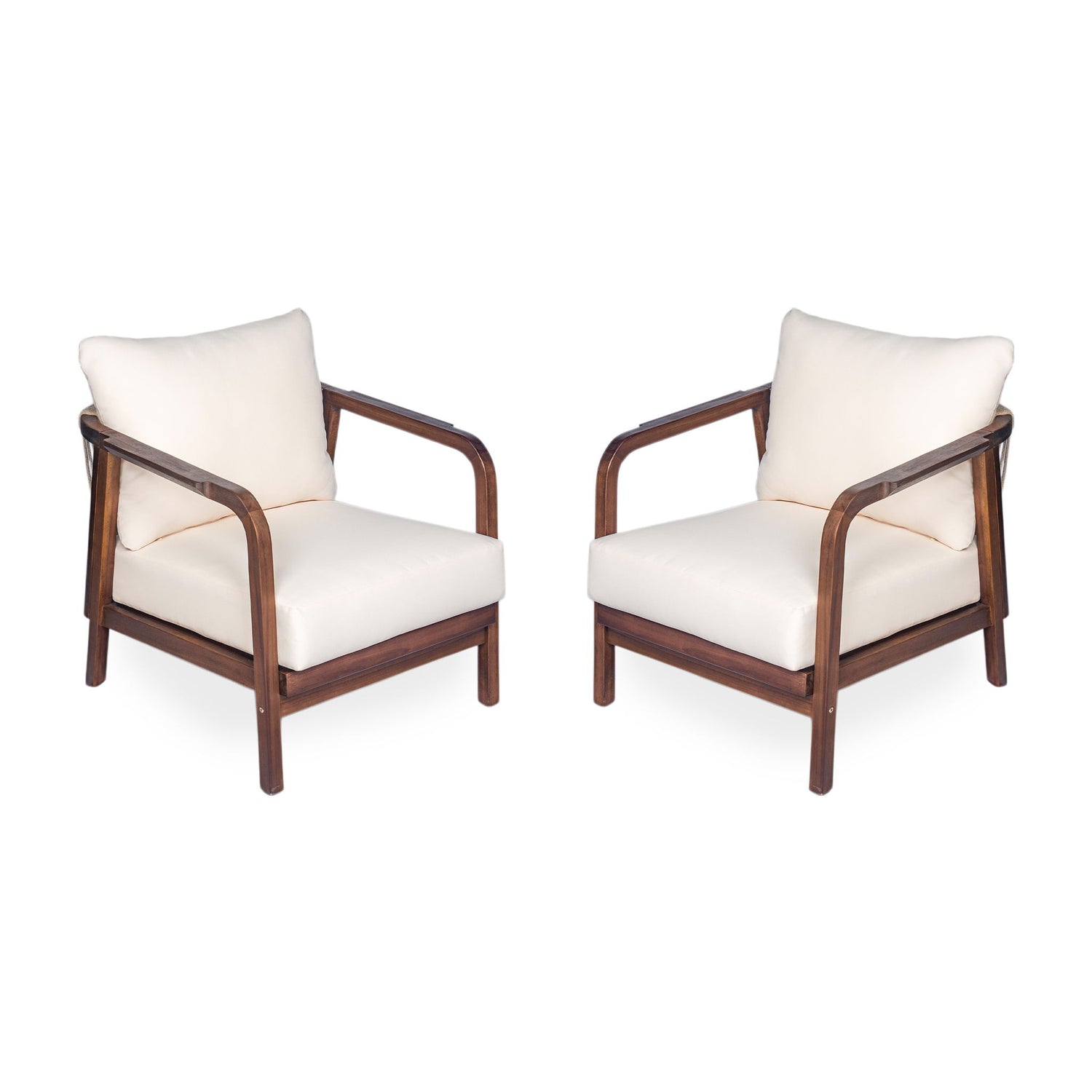 Outdoor Lounge Chair With Woven Backrest, Solid Wood Frame, Comfortable Cushions - Dark Brown / 2 Pieces is backordered and will ship as soon as it is back in stock.