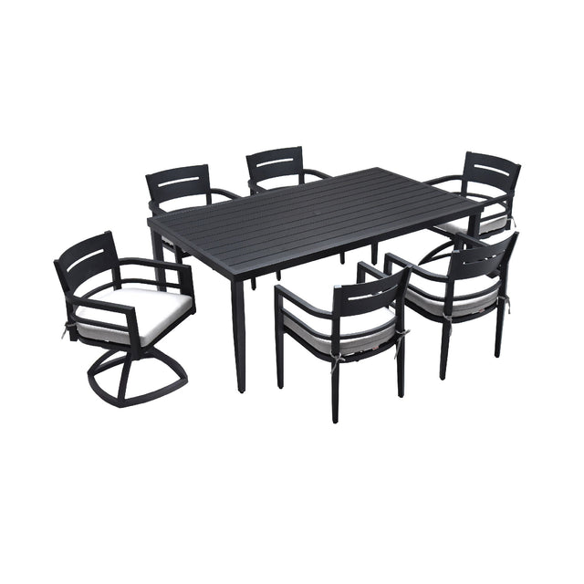 7 Piece Modern Outdoor Patio Dining Set Furniture, 4 Dining Chairs & 2 Swivel Rockers Sunbrella Fabric And Rectangle Dining Table With Umbrella Hole - Ember Black
