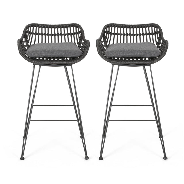 Outdoor Wicker Barstool With Cushions (Set of 2) - Gray