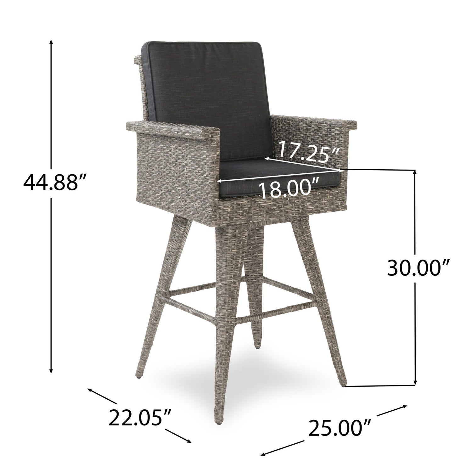 Outdoor Rattan Swivel Barstool With Water Resistant Cushion - Mixed Black / Dark Gray