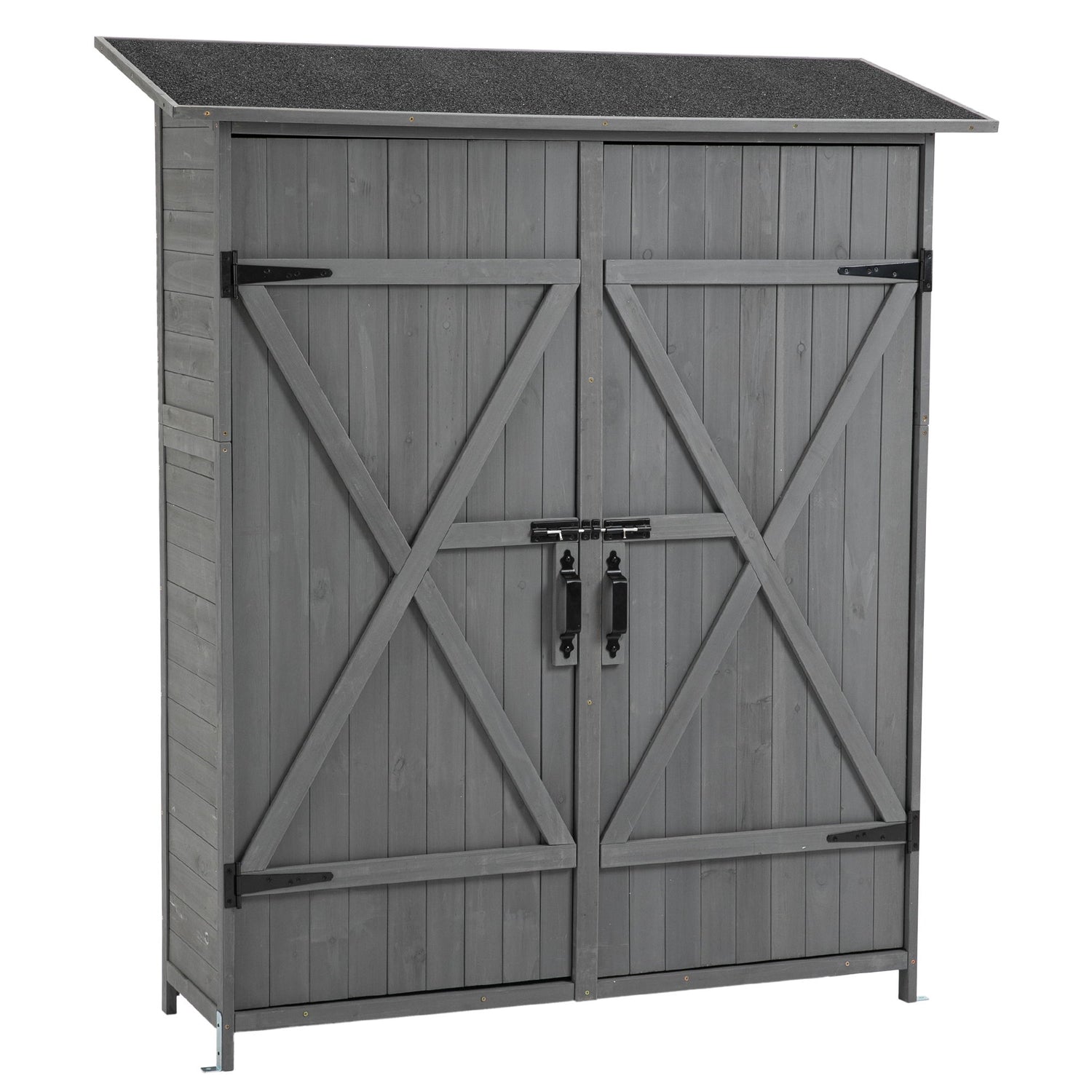 Outdoor Storage Shed With Lockable Door, Wooden Tool Storage Shed With Detachable Shelves & Pitch Roof - Gray