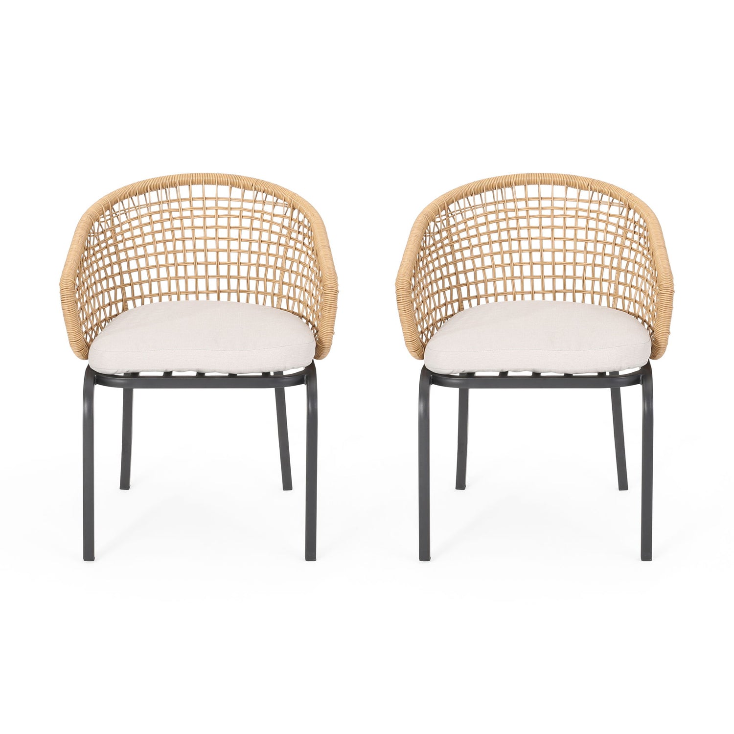 Outdoor Wicker Chair With Powder Coated Iron Legs - Light Brown