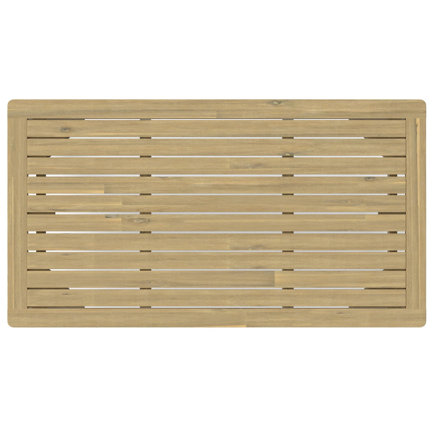 - Acacia wood brings a sleek and exotic look to your space, this durable hardwood naturally withstands outdoor elements and will not darken over time.