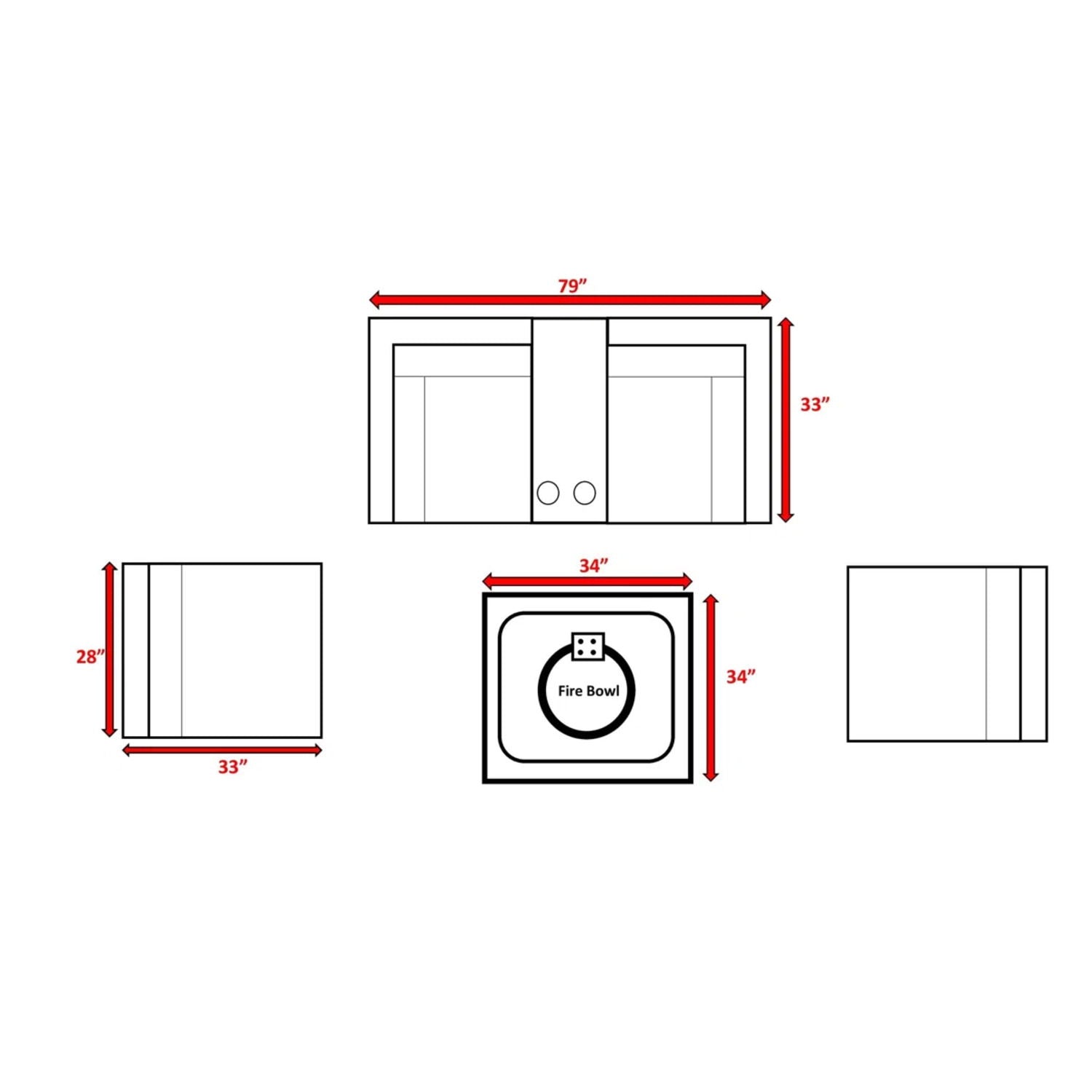 - Complete 6-Piece Set: Includes 2 armless chairs, 1 left-facing chair, 1 right-facing chair, 1 center armrest with cup holders, and 1 fire pit
