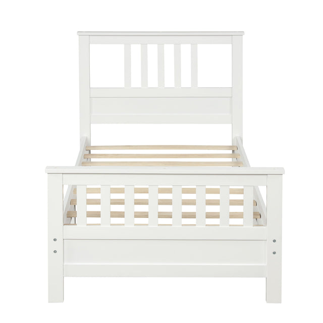 Platform Bed With Paneled Headboard And Footboard, Twin Size - White