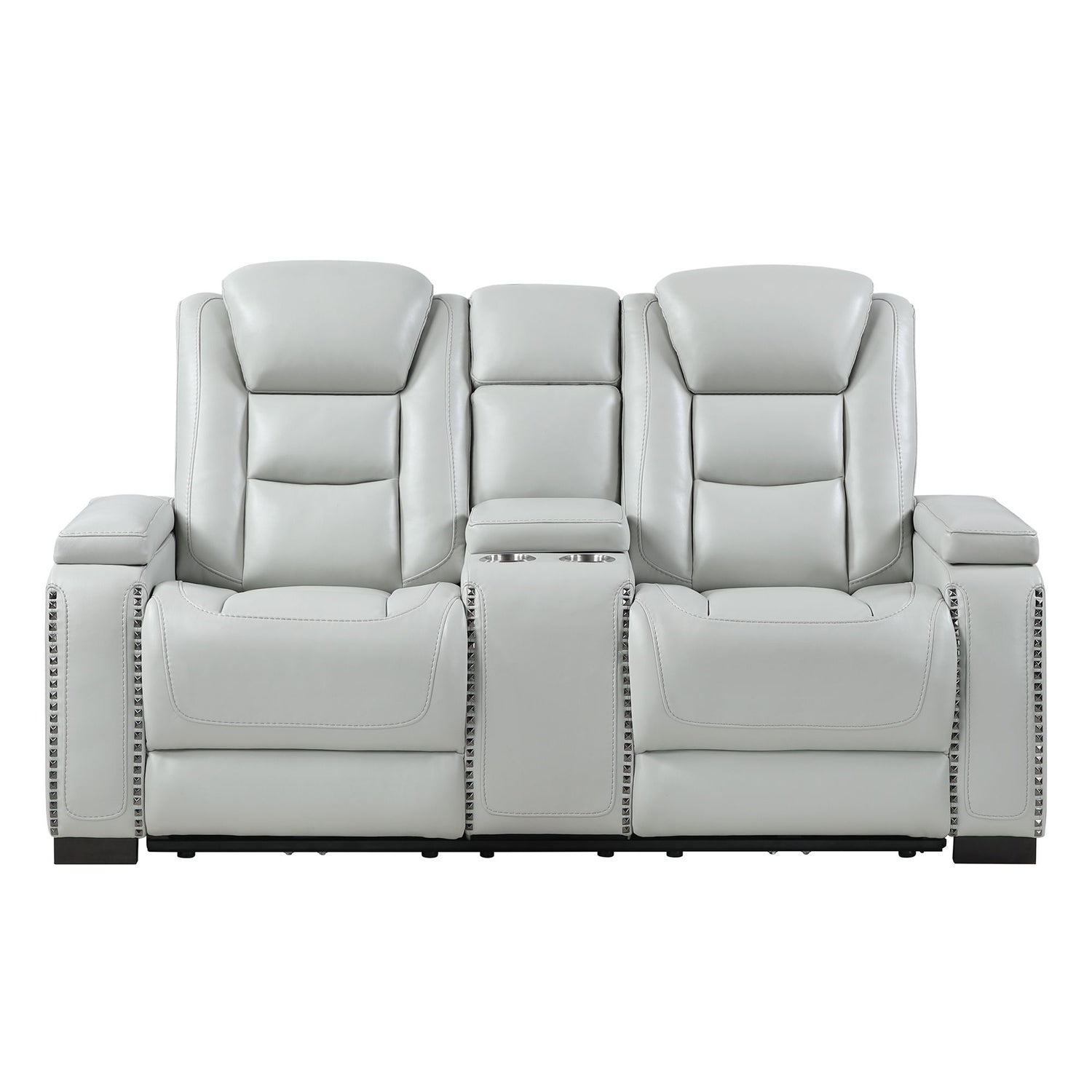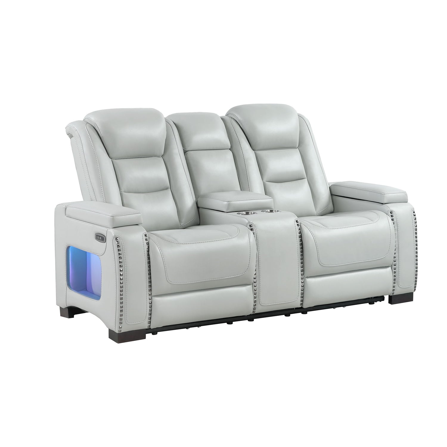Power Console Loveseat With Power Headrest USB LED And Bookshelf Arms - Gray