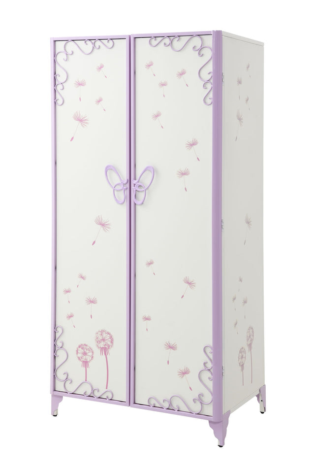 - Elegant Butterfly Design: This wardrobe features intricately designed metal doors with butterfly and scrolled trim, accented by PU leather purple dandelion decorations, creating a sophisticated and unique appearance.