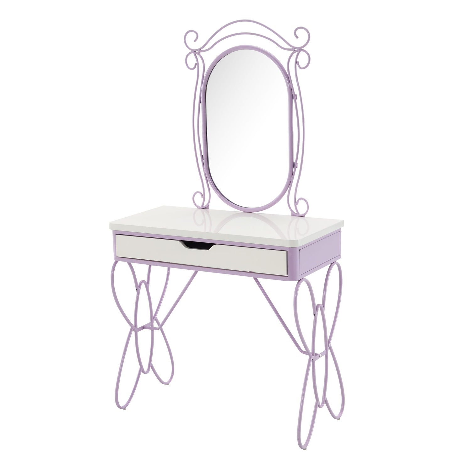 - Elegant Butterfly Design: The vanity set showcases intricate butterfly motifs on its metal base and mirror trim, adding a delicate and artistic touch to any room decor.