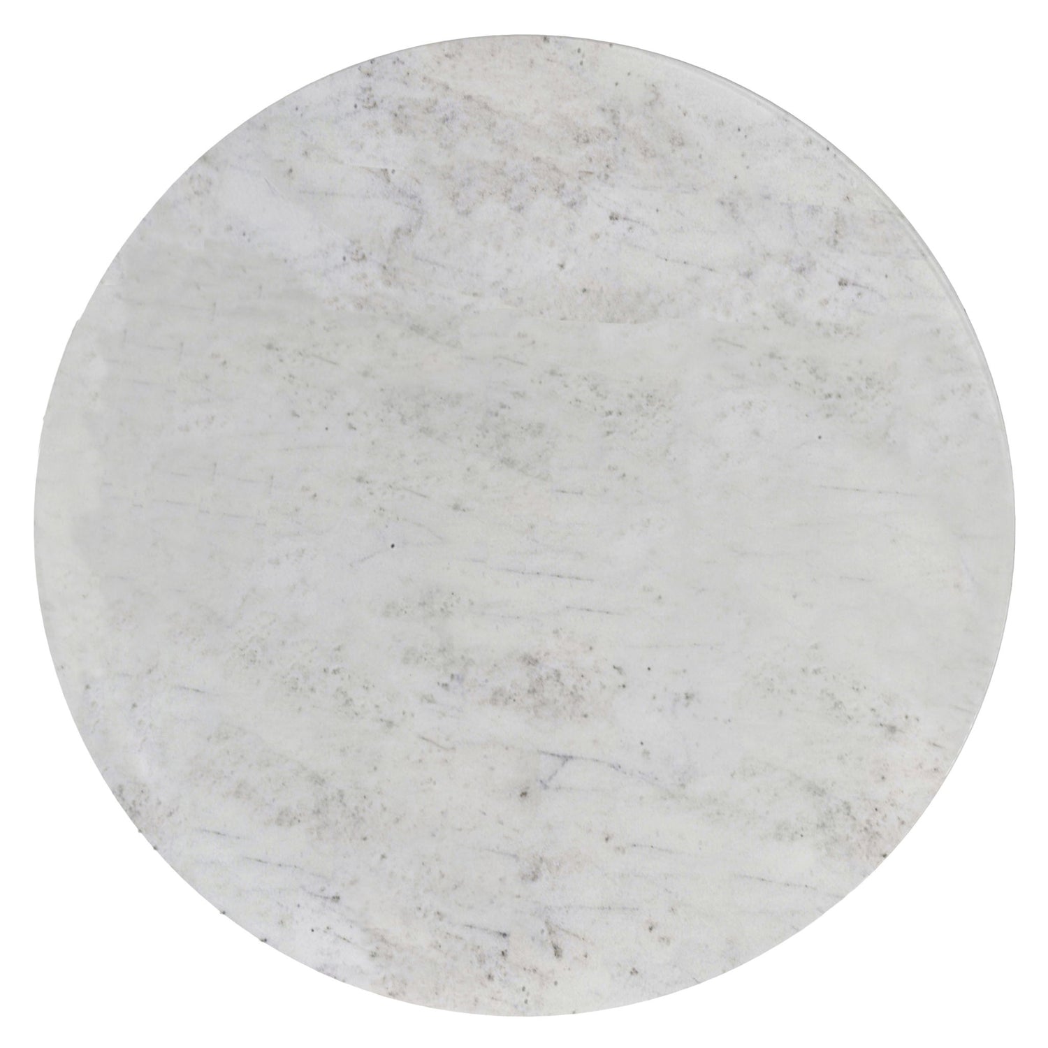 - Hand-finished base in Antique Brass and White Marble tabletop.