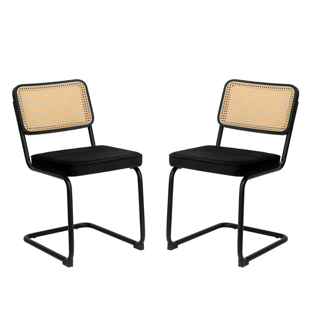 Dining Chairs, Velvet Rattan Side Accent Chairs With Painted Legs, Modern Mid - Century Breuer Designed Chairs, Upholstered Dining Living Room Kitchen Chairs (Set of 2) - Black
