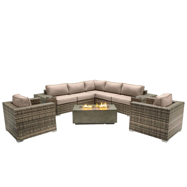 6 Person Seating Set With Cushions & Fire Pit - Gray