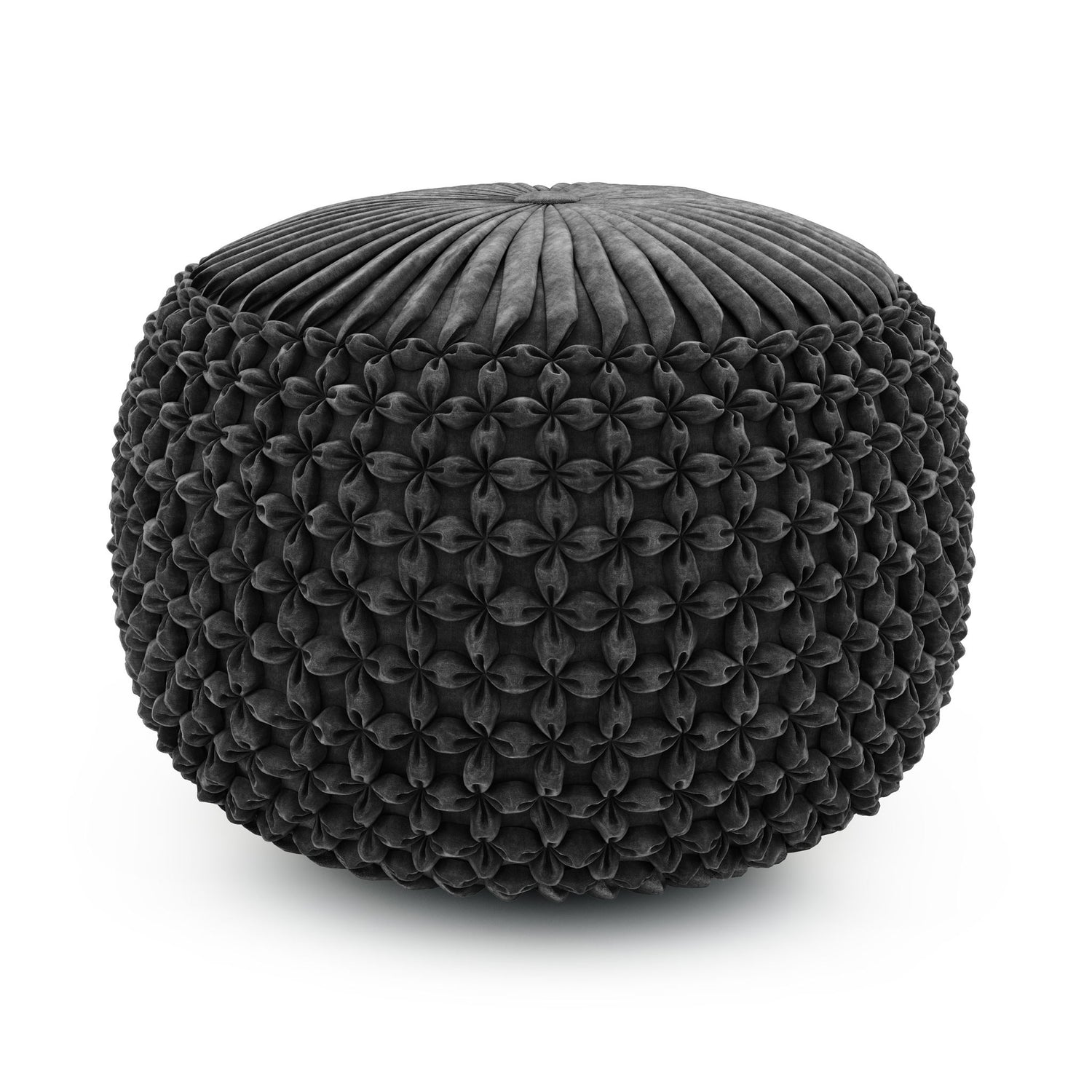 - Versatile round shape featuring a button tufted pleated top and unique tufted detail sides