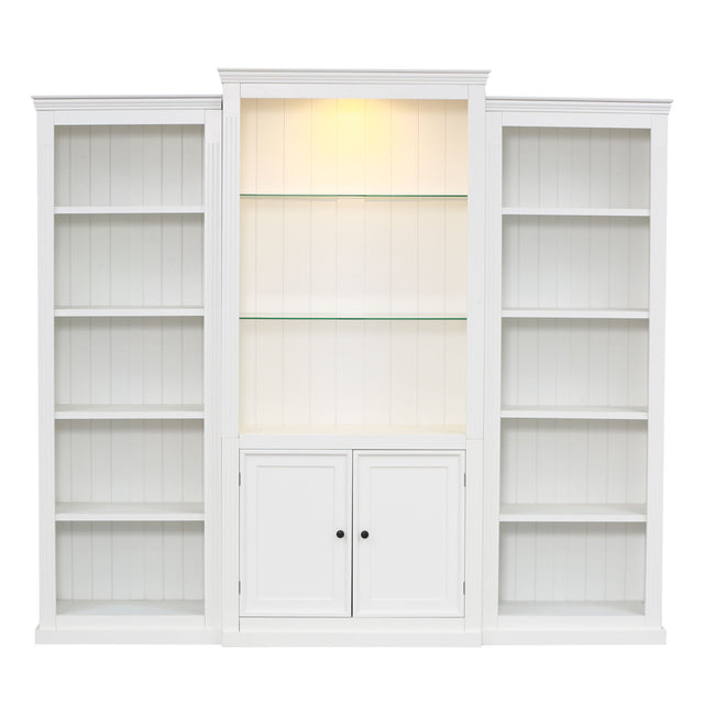 Retro Style 3 Piece Bookcase Display Cabinet With Adjustable LED Lighting, Tempered Glass Shelves - White