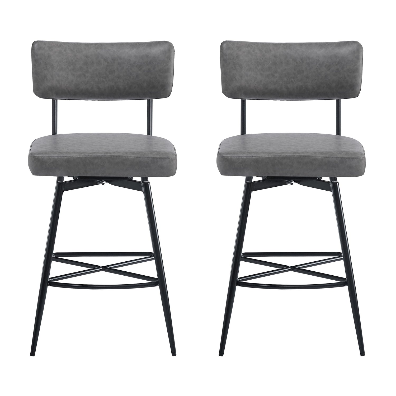 Retro Swivel Counter Stools (Set of 2) Counter Stools With Iron Frame, Sponge Cushion, Footrest, Suitable For Kitchen - Gray