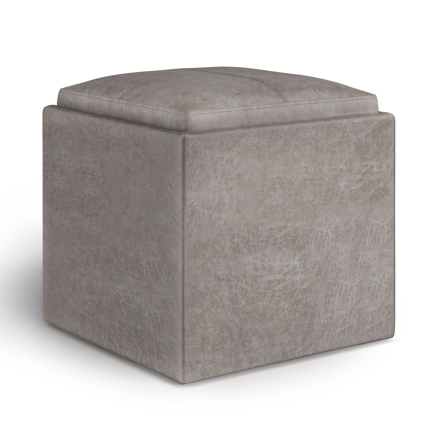 Rockwood - Cube Storage Ottoman With Tray - Cloud Gray