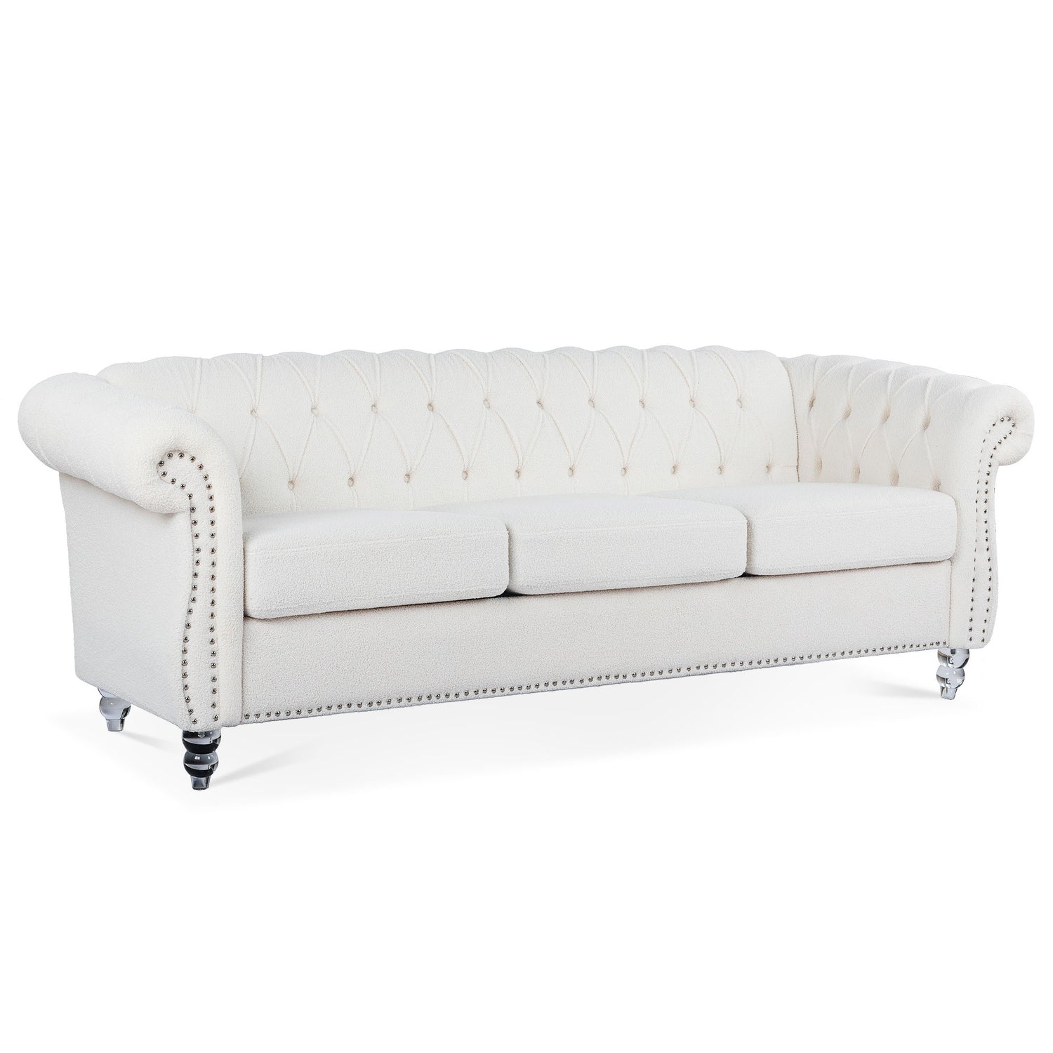 84.65" Rolled Arm Chesterfield 3 Seater Sofa - White