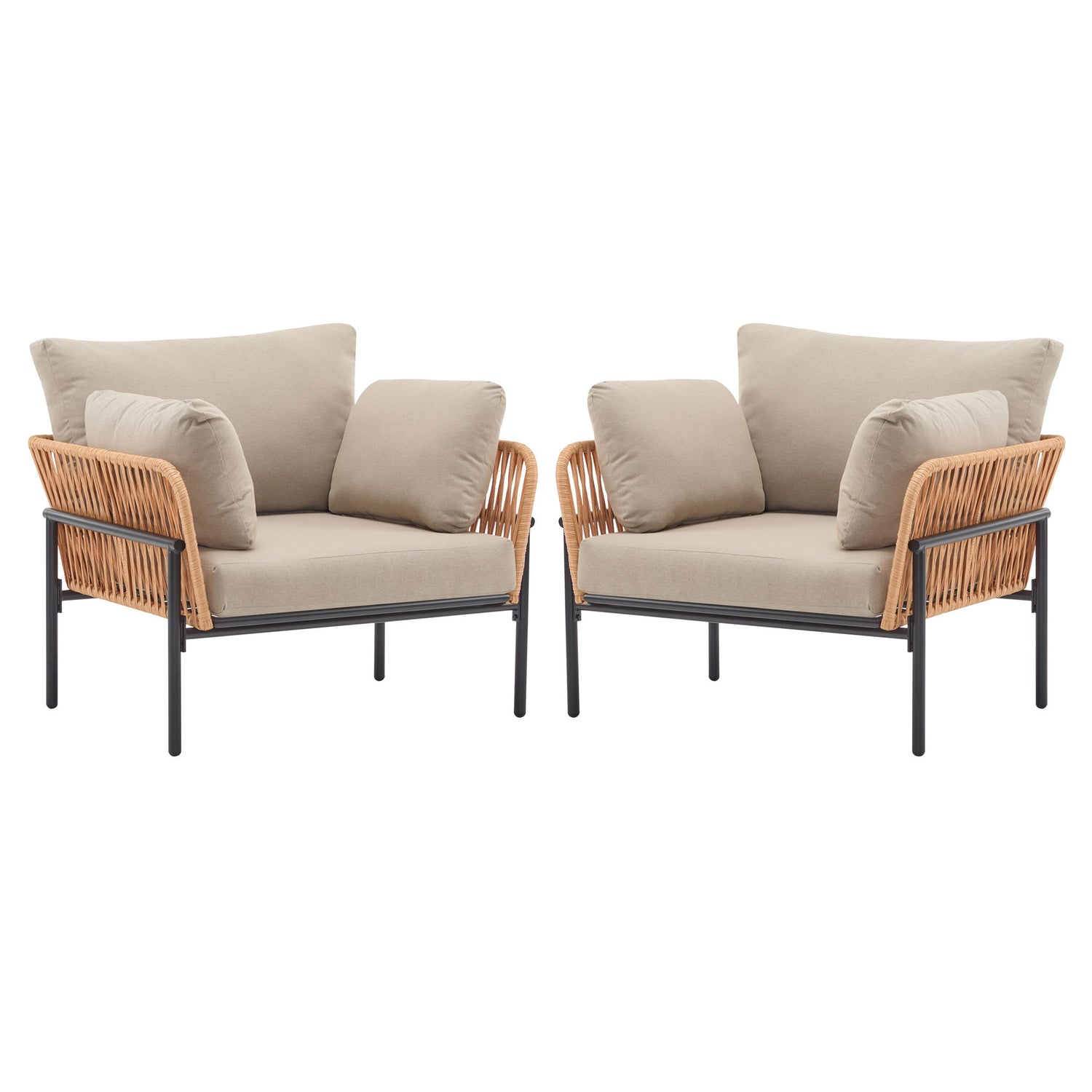 Lounge Chairs With Cushions / Wood Tone Rope Accents, Iron And Rattan (Set of 2) - Beige / Natural