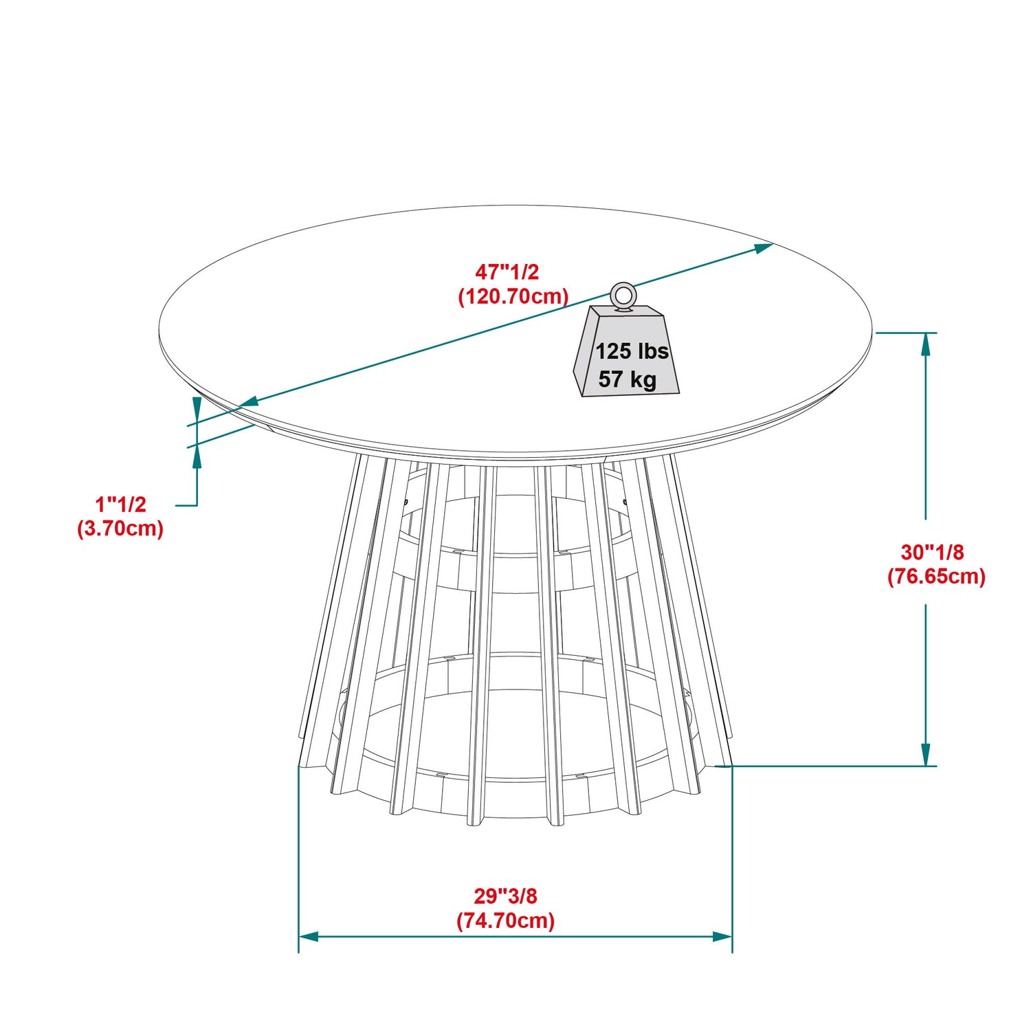 - Round Tabletop: Enjoy spacious dining experiences without sacrificing intimacy with our table's round tabletop design, thoughtfully crafted to prevent crowding and create a cozy atmosphere perfect for lively conversations and memorable gatherings.