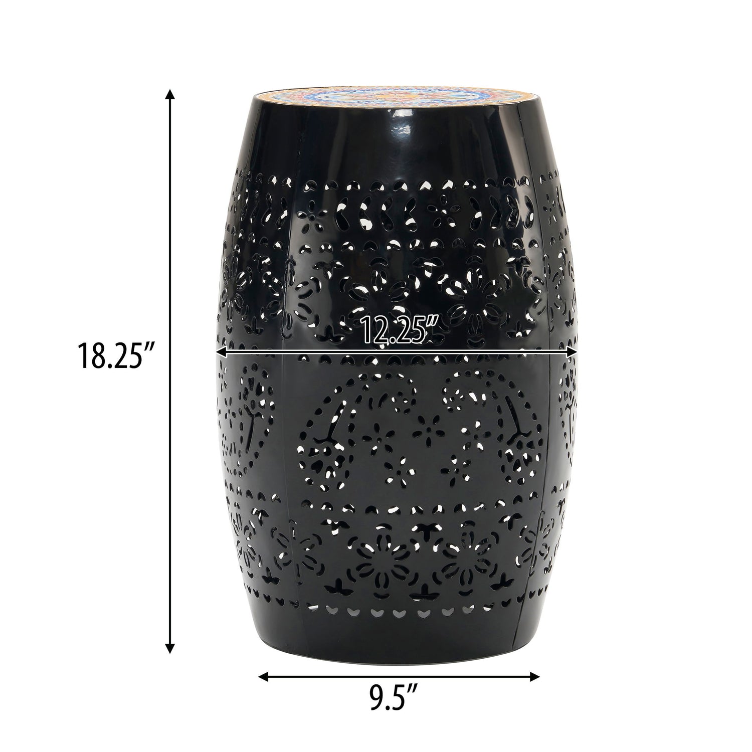 Ruby - Boho Mosaic Side Table With Ceramic Tile Top - Black is backordered and will ship as soon as it is back in stock.