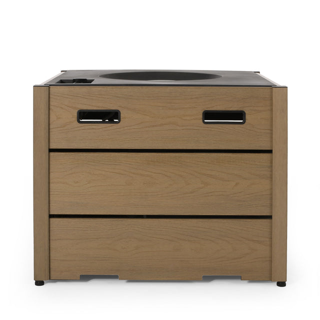 Rustic Style Outdoor Wpc Base Square Propane Fire Pit, 40, 000 Btu - Brown