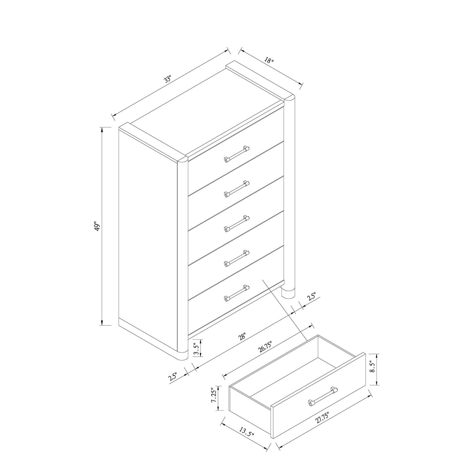 - Spacious Drawers: Generous drawer space provides organized storage for everyday essentials