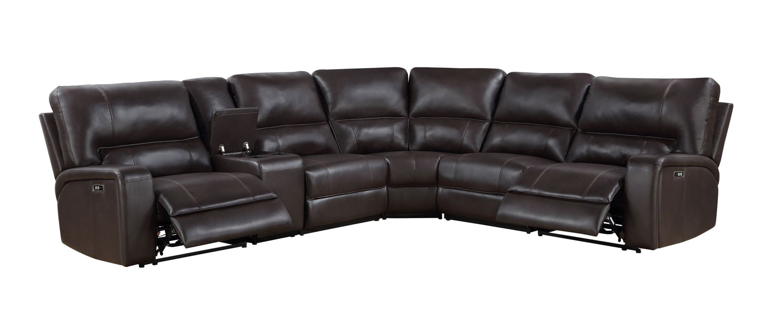 Saul - Faux Leather Power Recliner Sectional Sofa With USB Port Cupholder Console - Espresso